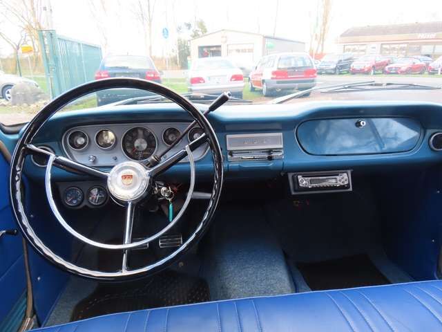 Netter Ford P5 aus dem Jahre 1965. Ursprünglich lief der Ford als 17M Super vom Band und wurde irgendwann einmal aufgerüstet mit einer 2.3 V6 Maschine aus dem P7. Das Fahrzeug befindet sich in einem altersgemäß ordentlichen und gepflegten Zustand mit kleinen normalen Gebrauchsspuren der Jahre, z.B. löst sich der Himmel an der C-Säule etwas. Kein Museumszustand, aber ansehnlich mit einer sympathischen Patina. Die Innenausstattung wurde mal neu bezogen, handwerklich ganz ordentlich aber nichts für Freunde des Originalen. Der Wagen kommt aus den Niederlanden und hat auch noch niederländische Papiere. In den Papieren war der Motorumbau eingetragen. Vom Zustand her sollte der Ford auch tauglich sein für eine deutsche Hauptuntersuchung, bezüglich der Motoreintragung bedarf es allerdings einen Oldtimerfreundlichen Prüfer.