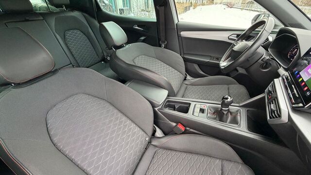 6 Lautsprecher, Ablagetasche an Vordersitzlehnen, Airbag Beifahrerseite abschaltbar, Airbag Fahrer-/Beifahrerseite, Antriebs-Schlupfregelung (ASR), Außenspiegel elektr. verstell-, heiz- und anklappbar mit Spiegelabsenkung, Außenspiegel grau, Blinkleuchten LED in Außenspiegel integriert, Bluetooth-Schnittstelle mit Freisprecheinrichtung integriert, Bordcomputer, Doppeltonhorn, Einstiegsleisten beleuchtet, Elektron. Querdifferentialsperre (XDS), Fahrassistenz-System: Fahrprofilauswahl (SEAT Drive Profile), Fahrassistenz-System: Müdigkeitserkennung, Fahrassistenz-System: Spurhalteassistent, Fahrassistenz-System: Umfeldbeobachtungssystem (Front assist) mit City-Notbremsfunktion, Fensterheber elektrisch vorn + hinten mit Komfortschaltung, Gepäckraumabdeckung / Rollo, Handschuhfach beleuchtet, Innenraumlicht-Paket LED, Isofix-Aufnahmen für Kindersitz, Karosserie: 5-türig, Klimaanlage Climatronic 3-Zonen, Kofferraumbeleuchtung, Kombiinstrument digital (virtual cockpit), Kopf-Airbag-System, Lendenwirbelstütze Sitz vorn links, verstellbar, Lendenwirbelstütze Sitz vorn rechts, verstellbar, Lenkrad (Sport/Leder) mit Multifunktion, Mobile Online Dienste Seat Connect, Motor 1, 5 Ltr. - 96 kW 16V TSI ACT, Nebelscheinwerfer LED mit Abbiegelicht, Notrufsystem, Otto-Partikelfilter (OPF), Parkbremse elektrisch mit Auto-Hold-Funktion, Radioempfang digital (DAB+), Reifenkontroll-Anzeige, Rücksitzlehne geteilt/klappbar (1/3-2/3), Schadstoffarm nach Abgasnorm Euro 6d, Schalt-/Wählhebelgriff Leder, Seitenairbag, Seitenairbag vorn mitte (Central Airbag), Seitenscheiben hinten und Heckscheibe abgedunkelt, Sitz vorn links höhenverstellbar, Sitz vorn rechts höhenverstellbar, Sitzbezug / Polsterung: Stoff, Sport-Fahrwerk, Sport-Komfortsitze vorn, Start/Stop-Anlage, Steckdose (12V-Anschluß) vorn, Stoßfänger FR-Design, USB-Schnittstelle vorn (2-fach, Typ C), Verzurrösen Koffer-/Laderaum, Warnanlage für Sicherheitsgurt-System, Wärmeschutzverglasung