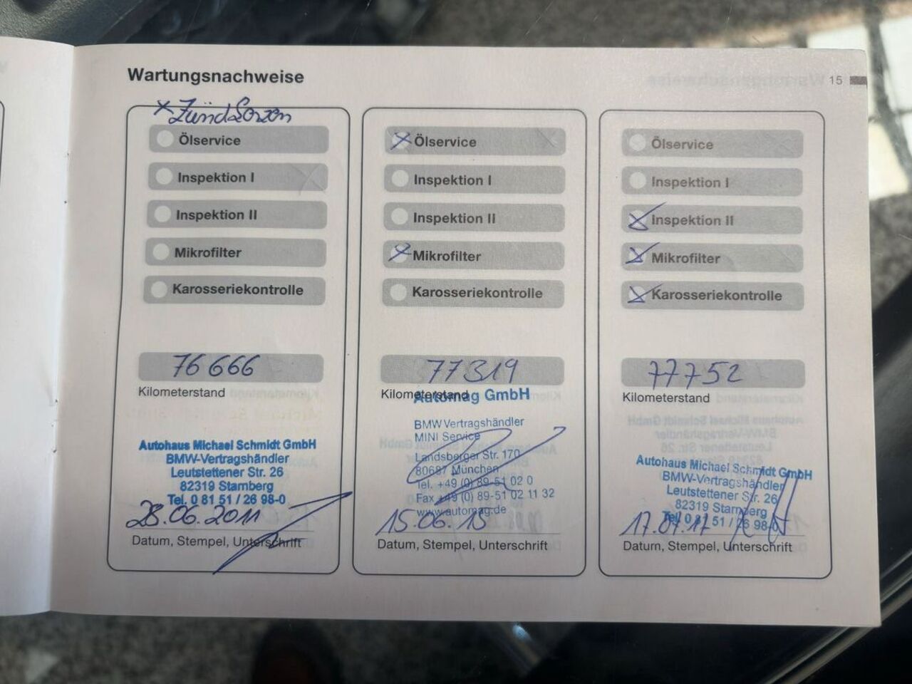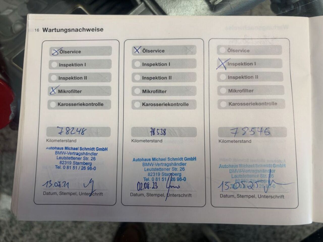 - letzter Service bei BMW Starnberg 11/25 bei 78.645, seitdem nur 50km gefahren
