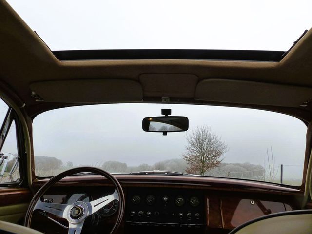 Unsere Jaguar MK II Limousine hat den großen Sechszylinder-Motor und ist eine der seltenen Vicarage-Umbauten. Die Firma Vicarage widmet sich seit 1984 der Verfeinerung und Verbesserung speziell von Jaguar MK II Modellen. Daher kommt auch die umfangreiche Sonderausstattung dieser 2003 umgerüsteten Limousine. Die Arbeit von Vicarage umfasst die weitgehende Zerlegung des Basisfahrzeugs. Die Rohbau-Karosserie wurde lackiert und mit modernen Methoden vor Rost geschützt. Nach der Komplettierung stand ein neuwertiger Jaguar MK II auf der Straße. Die Rechnung von 2003 betrug ca. 75.000 (GBP). Sie können hier einen nahezu neuwertigen Klassiker kaufen, der alles besser kann, ein unkomplizierter Jaguar MK II auch für große Reisen.