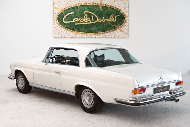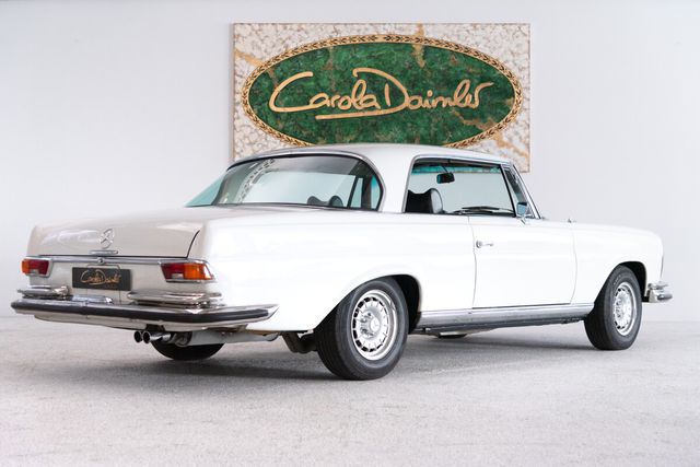 Zum Verkauf steht ein Mercedes-Benz W111 280 SE 3.5 Coupé in Weiß mit grünem Interieur, dessen Historie sich außergewöhnlich klar und nachvollziehbar darstellen lässt. Das Coupé wurde am 06.05.1970 in München an einen Verlag ausgeliefert und blieb trotz insgesamt drei Haltereinträgen bis 1996 durchgehend im Familienbesitz. Erst danach wechselte der Wagen erstmals außerhalb der Familie den Eigentümer. Dieser hielt das Fahrzeug nur ein Jahr, bevor es 1997 vom letzten Besitzer übernommen wurde, der noch im selben Jahr eine umfassende Restaurierung in Auftrag gab. Die Arbeiten wurden 1999 abgeschlossen und sind detailliert dokumentiert.Bereits beim Erstbesitzer erhielt der Wagen im Jahr 1977 ein Austauschgetriebe, das von der Mercedes-Benz Niederlassung München verbaut wurde. Diese Maßnahme ist vollständig belegt, unter anderem durch das originale Tauschaggregatheft. Im Zuge der Restaurierung Ende der 1990er-Jahre wurde zudem der Motor ersetzt; der originale Motor ist jedoch vollständig vorhanden und liegt ausgebaut bei. Die durchgehend nachvollziehbare technische Entwicklung des Fahrzeugs wird von mehreren über die Jahre erstellten Gutachten untermauert, zuletzt 2025 mit einer Bewertung von Note 2.Die Dokumentation dieses Coupés ist außergewöhnlich umfangreich und umfasst den originalen Pappdeckelbrief, die originale Datenkarte, das Serviceheft, das Tauschaggregatheft, eine vollständige fotografische Restaurierungsdokumentation sowie sämtliche Rechnungen. Damit präsentiert sich dieses 280 SE 3.5 Coupé als besonders authentisches und sorgfältig erhaltenes Exemplar eines der begehrtesten Modelle der Baureihe W111, ein Fahrzeug mit Charakter, Historie und Substanz. Der Mercedes 280 SE 3.5 wurde stets als das Topmodell der W 111 Baureihe bezeichnet, welche zwischen 1959 und 1971 produziert wurde. Sowohl das Cabriolet als auch das Coupé sind Fahrzeuge der Spitzenklasse mit Stil und Eleganz.Es dauerte zehn Jahre, bis in der Baureihe W 111 ein V8 Motor verbaut wurde. Dieser bringt mit seinen 3499 cm Hubraum damals erstaunliche 200 PS auf die Straße. Der Wagen wurde allerdings nicht nur technisch, sondern auch optisch optimiert. Die Frontpartie wurde mit einer flacheren Motorhaube und einem niedrigeren Kühlergrill versehen wodurch auch die Bezeichnungen Hoch- & Flachkühler entstanden sind.Die Flachkühler (und damit auch unser W 111) gelten heute als die begehrteste Variante. Besonders wertvoll sind diese Fahrzeuge auch wegen ihrer geringen Stückzahl. Von dem 280 SE 3.5 Coupé wurden zwischen 1969 und 1971 gerade einmal 3270 Stück produziert.