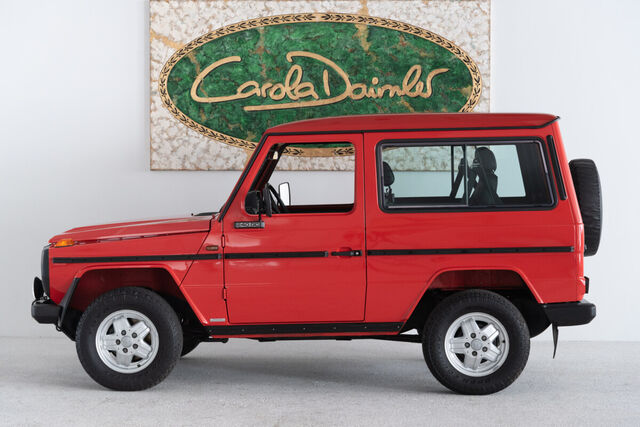Zum Verkauf steht ein unglaublich originaler und hervorragend gepflegter Puch 240 GD der ersten Serie (W460) in der attraktiven Farbe Karminrot. Im Jahr 1979 gebaut und 1980 in die Schweiz ausgeliefert, befindet sich das Fahrzeug heute in dritter Hand mit nachweislichen 158.956 Kilometern. Der Wagen ging im Jahr 2006 an seinen zweiten Besitzer nach Holland und im Jahr 2015 über Graz zu seinem heutigen Eigentümer nach Deutschland. Augenscheinlich befand sich der Puch ausschließlich in Sammlerhänden und wurde, im Gegensatz zu den meisten seiner Art, nie als Arbeitsmaschine eingesetztDer 240 GD ist absolut lückenlos dokumentiert und befindet sich in einem un-geschweißten originalzustand. Selbst ein großer Teil der Lackierung und das gesamte Interieur wie Sitze, Gummimatten, Türverkleidung usw. befinden sich im originalen Zustand. Alle Originale Dokumente wie die Betriebsanleitung, die Datenkarte, das Serviceheft usw. sind vorhanden und unterstreichen den Wert dieses Klassikers. Darüber hinaus wurden weitere historische Unterlagen, wie ein Kollisions-Carnet aus der Schweiz, die originalen Verkaufsbroschüren, alte Briefe und vieles mehr mit großer Sorgfalt aufbewahrt.Wegen seines unglaublichen Zustandes wurde der Wagen im Jahr 2018 auf dem Deckblatt der ersten Auflage des Mercedes Benz Classic Heftes (Nr. 54) mit dem Titel G-Class Birth of a legend, abgedruckt. Was bedeutet, dass selbst Mercedes keinen besseren und älteren G besitzt. Berichte in weiteren renommierten Magazinen wie Auto Bild Klassik und Auto Motor und Sport würdigen die authentische Originalität und die historische Bedeutung dieses Fahrzeugs.Dank kontinuierlicher Wartung und Pflege, zuletzt im November 2024, ist dieser 240 GD technisch und optisch in erstklassigem Zustand. Ob als stilvoller Begleiter für abenteuerliche Fahrten oder als wertvolle Ergänzung einer exklusiven Sammlung dieser Klassiker ist eine seltene Gelegenheit für Liebhaber und Sammler. Ein Fahrzeug wie den neuen Mercedes-Benz Geländewagen hat es noch nicht gegeben.Die erste Überschrift aus einer Verkaufsbroschüre für die 1979 erschienene G-Klasse lässt erahnen, wie stolz Mercedes auf seine Schöpfung war - und das zurecht.1972 entschloss sich Daimler-Benz dazu, gemeinsam mit der damaligen Steyr-Daimler-Puch AG einen Geländewagen zu entwickeln. Dies geschah unter anderem durch den Einfluss des iranischen Herrschers Mohammed Reza Pahlavi, der etwa 18 % der Aktien der Daimler-Benz AG hielt - er benötigte geländegängige Fahrzeuge für seine Grenzpatrouillen und für die Jagd. Daimler-Benz hoffte, die Fahrzeuge auch an die Bundeswehr verkaufen zu können, scheiterte dabei aber an Kostengründen am VW Iltis. Die Baureihe W460 startete 1979 mit fünf Aufbauten in zwei Radständen: Stationwagen und Kastenwagen gab es jeweils mit kurzem und langem, den offenen Geländewagen nur mit kurzem Radstand. Zum Start standen die Lackierungen Cremeweiß, Weizengelb, Coloradobeige, Kaminrot und Agavengrün zur Auswahl, gepaart mit den Innenfarben Schwarz oder Dattelbraun.Dank der Differentialsperren für Vorder- und Hinterachse ist die G-Klasse auch in schwerem Gelände einsetzbar. Aber auch auf der Straße weiß er zu überzeugen, darauf wurde während der Entwicklung ebenfalls viel Wert gelegt. Dank der flexiblen Gestaltung des Innnenraumes mit Fondsitzbank oder den hinteren längsgestellten Sitzen, boten sich viele Varianten an: im langen Radstand war der Stationwagen sogar mit bis zu neun Sitzplätzen möglich.Ein weiteres Merkmal der G-Klasse war die servicefreundliche Konstruktion. So wurden hauptsächlich bereits bestehende Bauteile aus anderen Baureihen (PKW und Transporter) verwendet, um eine weltweite Verfügbarkeit zu garantieren und dem Servicepersonal die Arbeit zu erleichtern. Alle Teile sind dabei vergleichsweise einfach zugänglich, sodass man selbst Hand anlegen kann, wenn man in abgeschiedenen Gegenden liegenbleiben sollte (was natürlich mit dem G äußerst selten vorkommt).Die Niederlage bei der Ausschreibung d