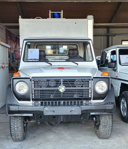 Einmalige Gelegenheit! 1 von 2.272 gebauten Fahrgestellen der Baureihe W461 !! Wir bieten hier einen seltenen 290GD Fahrgestell mit Krankenwagenkoffer an! Original nur 2.225 km gefahren! Das Fahrzeug kommt aus 1.Schweizer Hand. Ausgemustert als Reservekrankenwagen des Schweizer Militär. Diese Gelegenheit bekommt man nicht wieder. Oldtimer 1994mit H-Kennzeichen in allen Umweltzonen fahrbar! Günstige Oldtimer Versicherung und KFZ Steuer. Original Zustand. Wir haben diesen wunderschönen 290GD direkt aus der Schweiz importiert. Auf Wunsch wird eine Vollabnahme mit deutscher Zulassung durchgeführt. Service und Durchsicht werden gerade in unserer Werkstatt durchgeführt. Radstand 3.120 mm ! Ideal umzubauen als Fernreisemobil oder oder... Die Ausstattung als Krankenwagen ist original verbaut und wurde nicht verändert. Weitere Bilder folgen. Der solide 5-Zylinder OM602 Diesel ist einer der besten Motoren von Mercedes-Benz! Dieser Wagen wurde in der Schweiz als PUCH 290 GD ausgeliefert. Als PUCH Version sind nur 585 Fahrzeuge ausgeliefert worden. Sie erwerben hier ein absolut seltenes Fahrzeug im Bestzustand! Zuschaltbarer Allrad mit Geländeuntersetzung und 2 Differentialsperren! 5-Gang Schaltgetriebe! Solide und für die Ewigkeit gebaut!