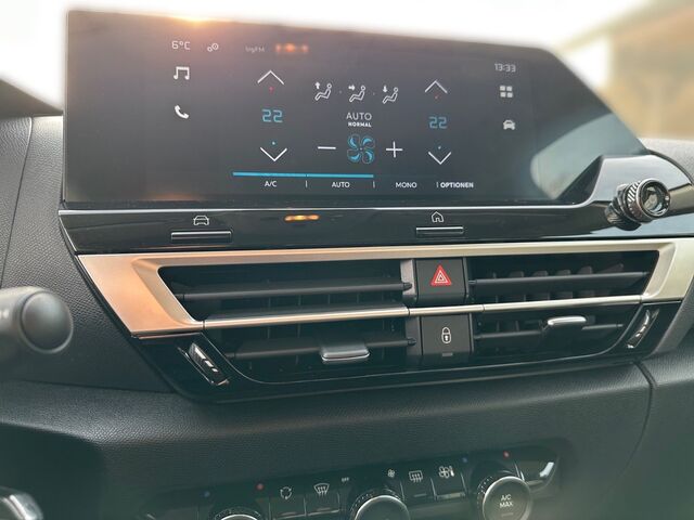 Dieser gepflegte CitroÃn C4 in attraktivem Blau Metallic bietet ein ausgezeichnetes Preis-Leistungs-Verhältnis für SUV-Liebhaber. Der Erstwagen wurde 2023 zugelassen und verfügt über einen sparsamen 3-Zylinder Benzinmotor mit 131 PS bei nur 1199 ccm Hubraum. Die Frontantrieb-Konfiguration mit Schaltgetriebe sorgt für ein angenehmes Fahrerlebnis. Das Fahrzeug überzeugt mit umfangreicher Sicherheitsausstattung wie Spurhalteassistent, Kollisionsvermeidung und Verkehrszeichenerkennung. Der Innenraum in Grau mit Stoffbezügen bietet Platz für 5 Personen und punktet mit digitalem Cockpit, Touchscreen, Klimaautomatik und praktischen Komfortfunktionen. Die SPOTICAR-Zertifizierung und volle Servicehistorie unterstreichen den guten Zustand trotz zwei Vorbesitzer. Mit einer Anhängelast von 1200 kg (gebremst) ist der C4 auch für Transportaufgaben gut gerüstet.