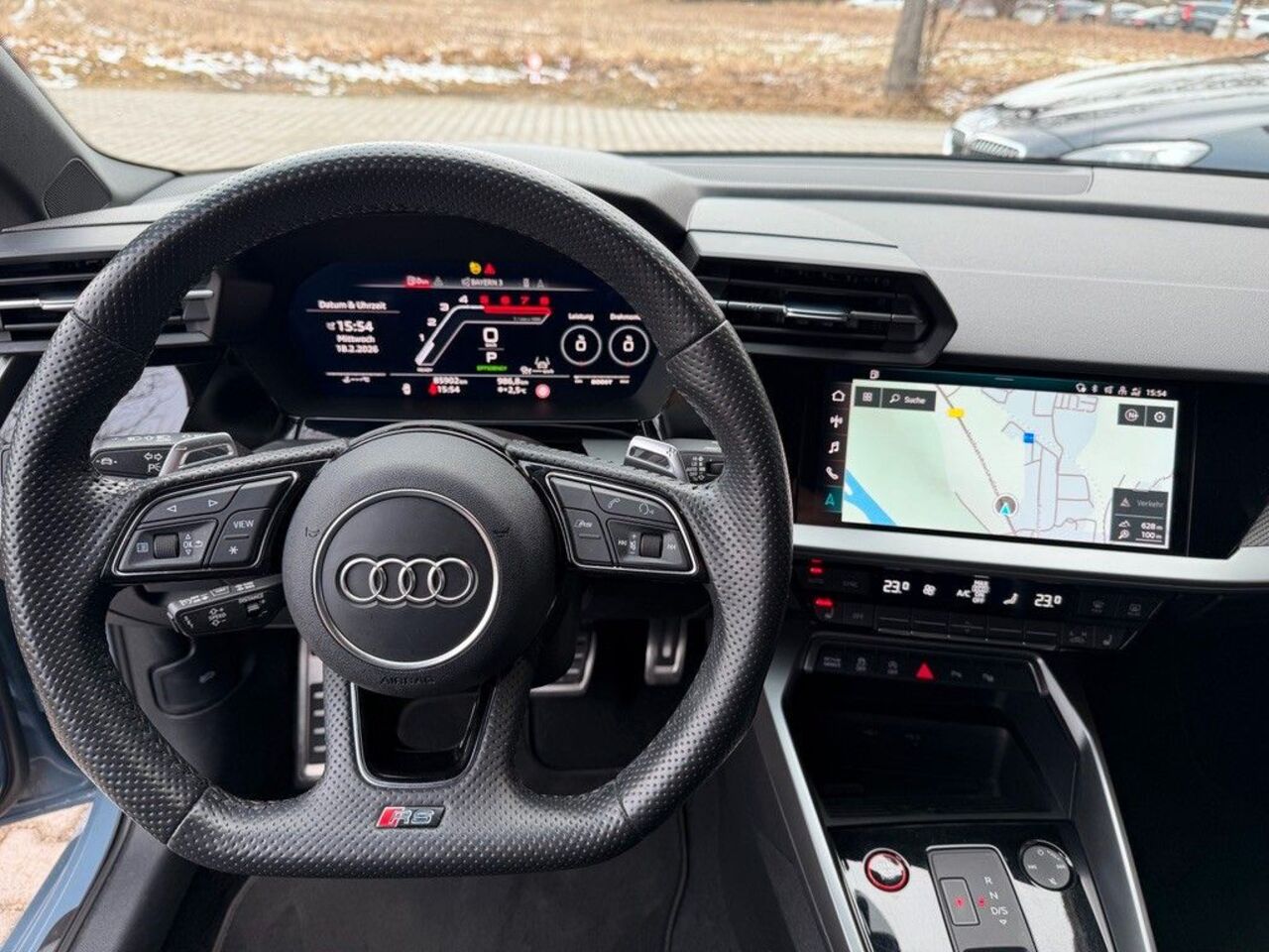 Audi connect plus (Internetbasierende Dienste), Audi Smartphone Interface, Außenspiegel Wagenfarbe, Bluetooth-Freisprecheinrichtung mit Spracherkennung (Audi Phone Box), Fahrassistenz-System: Verkehrszeichenerkennung, Frontscheibe Wärmeschutzverglasung, Gepäckraumklappe elektr. betätigt (öffnen + schliessen), Head-up-Display, Höchstgeschwindigkeit 280 km/h, Innenspiegel mit Abblendautomatik, Keramik-Bremsanlage vorn, Bremssättel Anthrazit lackiert, Kindersicherung elektr. betätigt, Lendenwirbelstützen vorn, elektr. verstellbar, LM-Felgen 8x19 (5-Speichen, Y-Design, für Winterbereifung), LM-Felgen vorn/hinten: 9x19 / 8x19 (5-Y-Speichen, schwarz matt), Matrix-LED-Scheinwerfer, Metallic-Lackierung Kemora Grau, Multi-Media-Interface MMI Navigation Plus mit MMI Touch, Optik-Paket schwarz plus, Reifendruck-Kontrollsystem, RS Exterieur-Paket Schwarz glänzend, Rückfahrkamera, Seitenairbag vorn und hinten, Sitzbelegungserkennung für Sicherheitsgurte, Sitzbezug / Polsterung: Leder Feinnappa, Rautensteppung mit Logo-Prägung in Vordersitzlehnen, Sitze vorn elektr. verstellbar (links mit Memory), Sitzheizung vorn, Sound-System DSP / Audi Sound-System, USB-Schnittstelle für Fondpassagiere, Verglasung hinten abgedunkelt (Privacyverglasung)