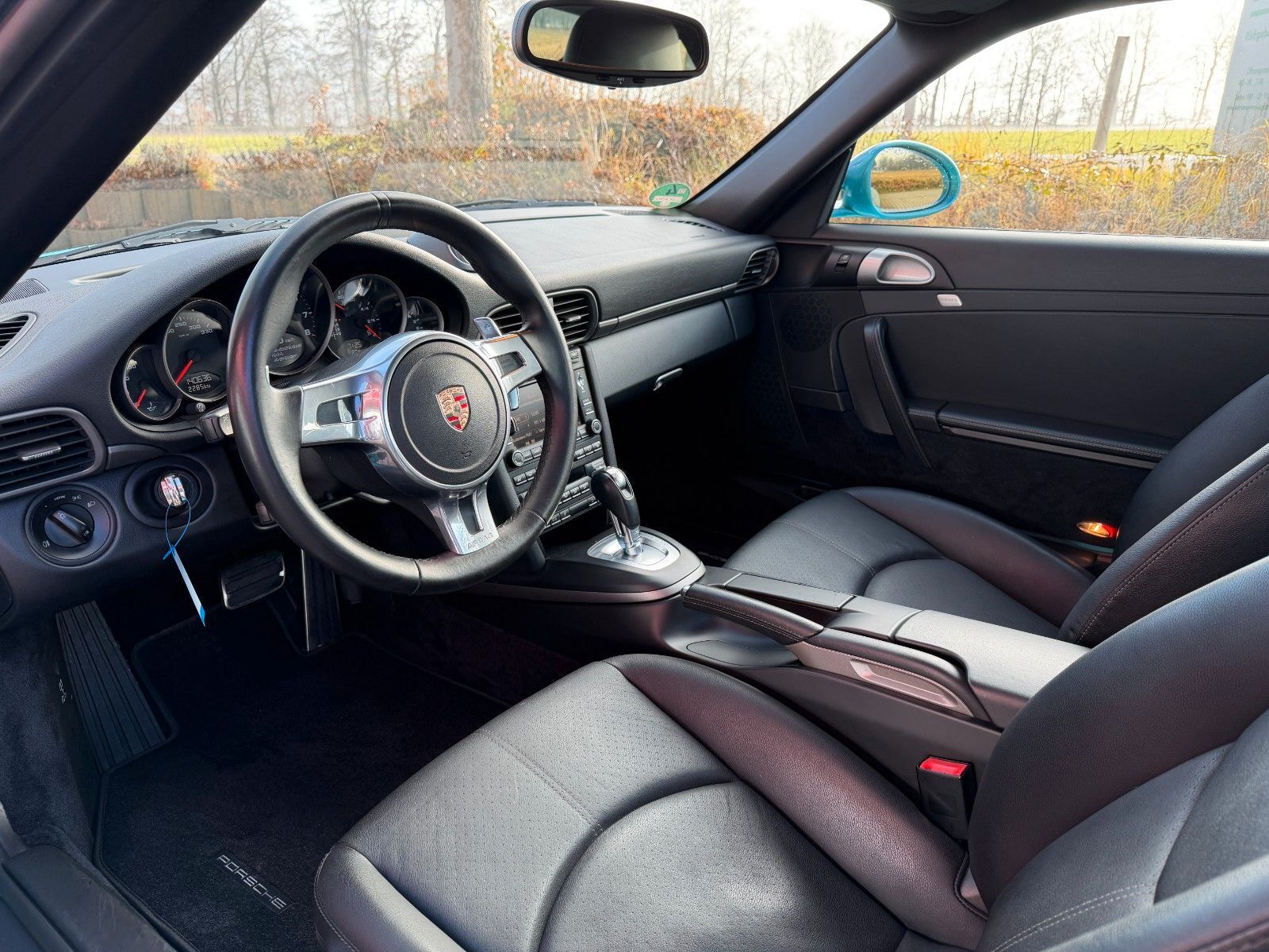 Exterior/interior mirrors with auto-dimming and rain sensor, roof transport system, driver assistance system: Park Assist, floor mats, alloy wheels front/rear: 8x19 / 11x19 (Sport wheel), metallic paint, music player interface (universal interface for iPod / MP3 / ...), handset for telephone module (PCM), Porsche Active Suspension Management (PASM), Porsche Communications Management (PCM) incl. extended DVD navigation module, tire pressure monitoring system, electric sliding sunroof, 911 logo in chrome finish, heated seats front, Sport Chrono Package Plus, telephone module for Porsche Communications Management (PCM), preparation for vehicle tracking system.