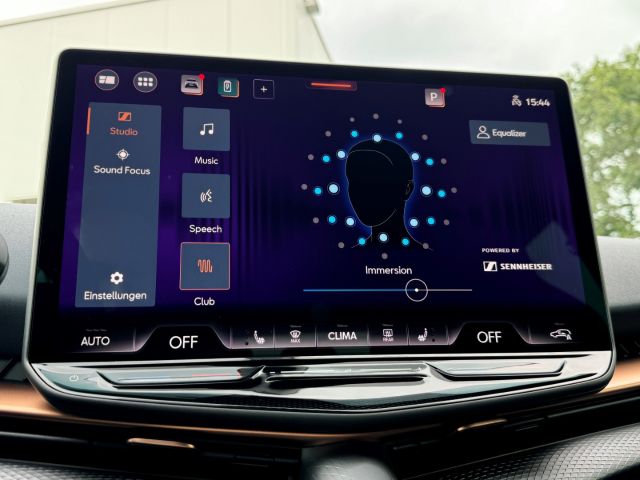 • Adrenaline Pack- Top View Kamera- Panorama Glasdach mit elektrischem Sonnenschutzrollo- Sennheiser High-End Surround Soundsystem, mit 12 Lautsprechern- Smart Ambient Light mit hinterleuchteten Tür-Elementen vorne und hinten- Mittelarmlehne hinten, mit Durchlademöglichkeit- Türeinstiegsleisten vorne mit CUPRA Schriftzug, beleuchtet- Lendenwirbelstütze vorne, pneumatisch einstellbar- Diebstahl-Warnanlage inkl. Innenraumüberwachung, Back-up-Horn, Abschleppschutz und Safe-Sicherung- AR Head-up-Display- Außenspiegel mit Memory-Funktion und Beifahrerspielabsenkung- Vordersitze elektrisch einstellbar mit Memory Funktion- Variabler Gepäckraumboden