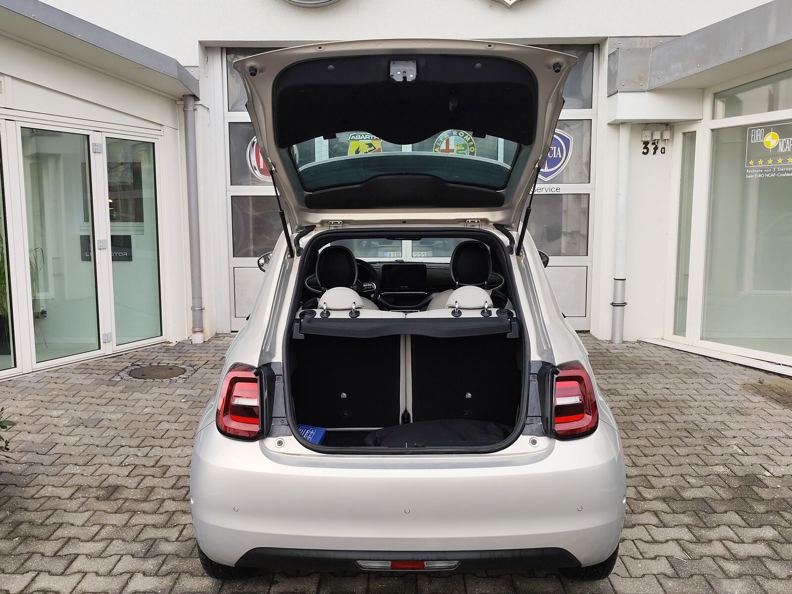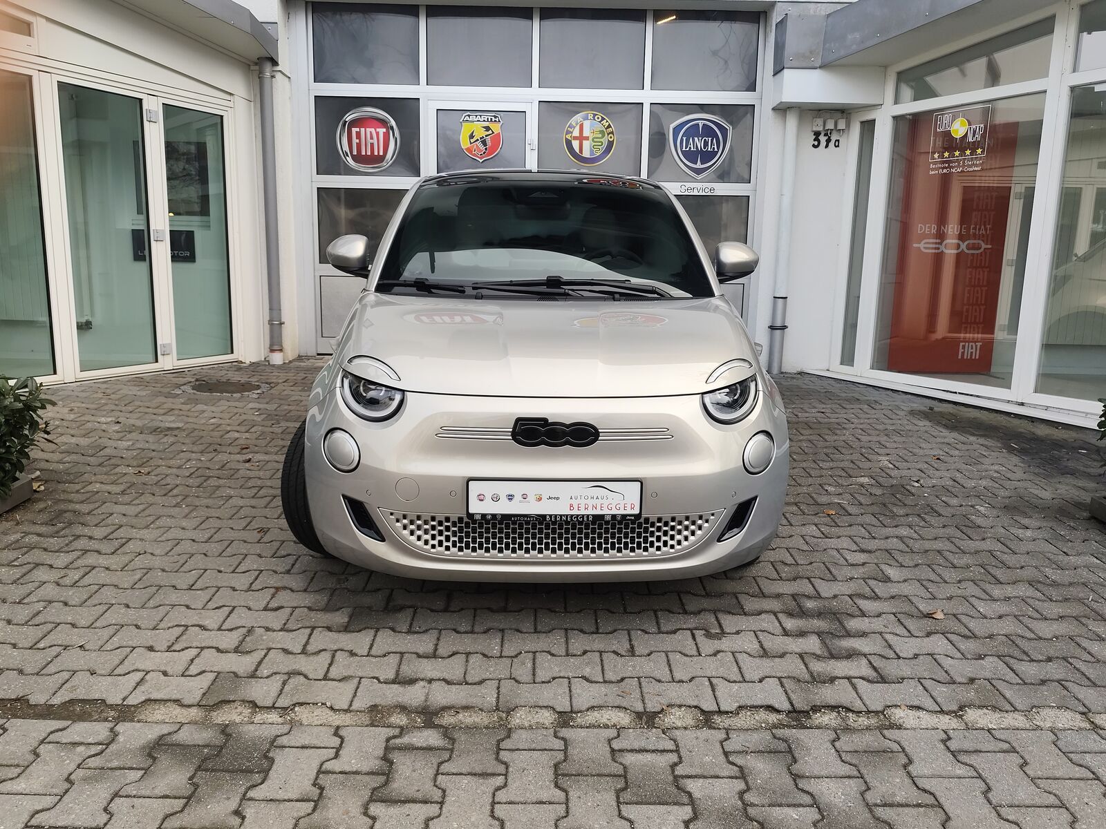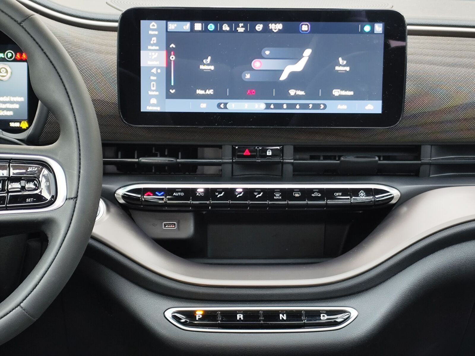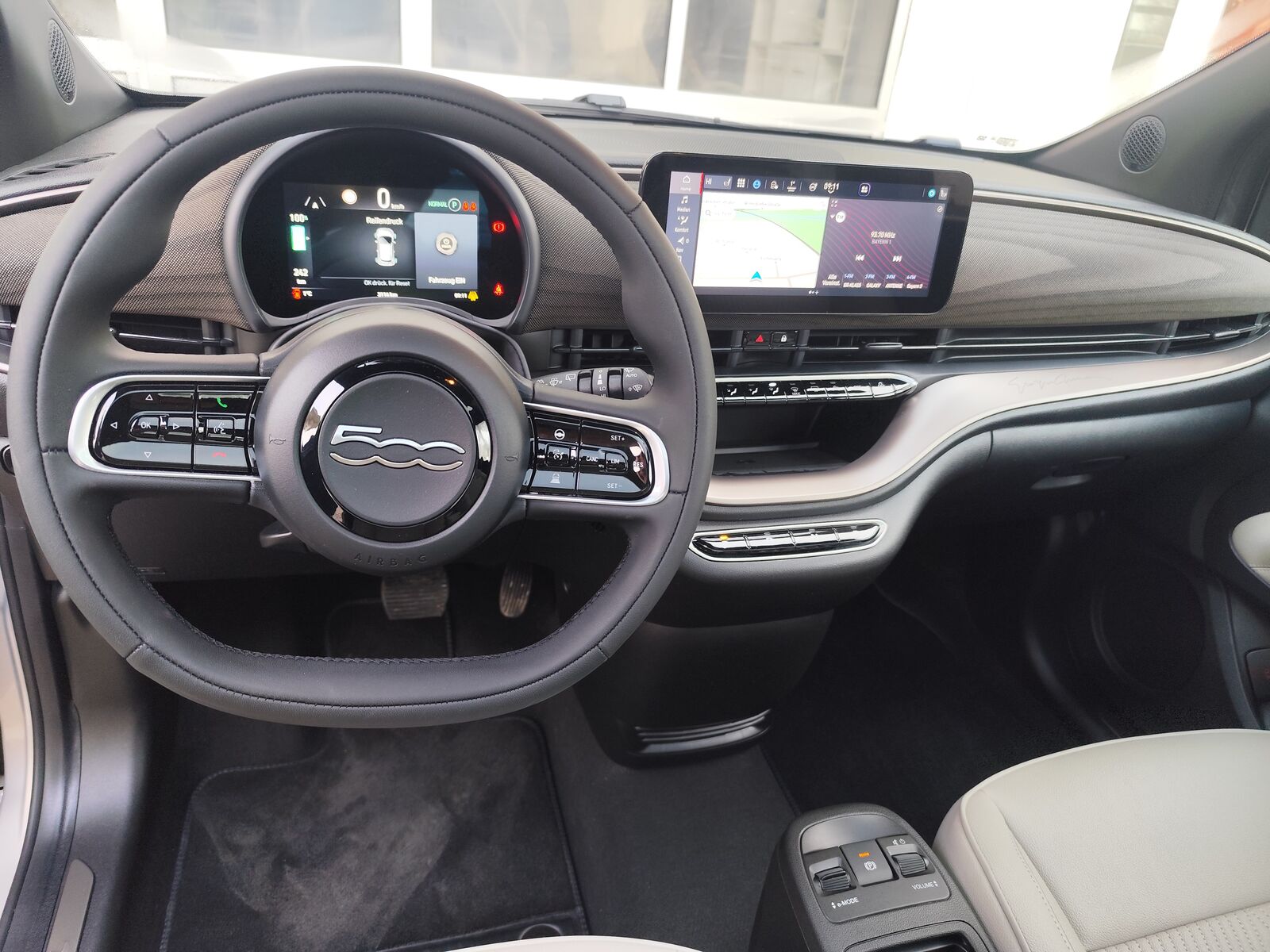 Armaturenbrett farbig (Wagenfarbe), Armaturenbrett mit Holzdekor, Audiosystem: Premium - HiFi-Anlage von JBL, Auenspiegel Wagenfarbe, Einstiegsleisten (verchromt), Elektromotor 87 kW (cont. 43 kW), Fahrassistenz-System: Aufmerksamkeits-Assistent, Fahrassistenz-System: Autonomer Notbrems-Assistent (AEB), Fahrassistenz-System: Autonomes Fahren Level 2, Fahrassistenz-System: Fernlichtassistent, Fahrassistenz-System: Spurhalteassistent, Fahrassistenz-System: Totwinkel-Assistent, Fahrassistenz-System: Verkehrszeichenerkennung, Fahrmodusschalter, Fensterheber elektr. vorn mit Komfortschaltung, Fensterzierleisten verchromt, Frontscheibe heizbar, Fumatten, Geschwindigkeits-Regelanlage (Tempomat) mit Abstandsregelung, Getriebe fr Elektrofahrzeug, Heckleuchten LED, Heckscheibe heizbar, Induktionsladeschale fr Smartphone (Wireless Charging), Infotainment-System: UConnect 5 mit Navigationssystem, DAB+ und Bluetooth-Freisprecheinrichtung (Touchscreen 10, 25), Innenspiegel mit Abblendautomatik, Instrumentenanzeige Farbdisplay, 7 Zoll, Karosserie: 3-trig, Keyless-Entry & Go, Kopfsttzen hinten, Ladekabel mit Typ 2-Stecker (Mode 3), Lenkrad (ecoLeder, 2-farbig), Lenksule (Lenkrad) hhenverstellbar, Mobile Online Dienste UConnect Live, One Pedal Drive (elektronisches Gaspedal), Parkbremse elektrisch, Regen-Lichtsensor, Rckfahrkamera mit 360 Surround View, Rckfahrkamera Park View, Scheinwerfer LED, Schnellladefunktion 85 kW (DC), Seitenscheiben hinten abgedunkelt, Seitenschutzleisten mit Chrom-Applikationen, Sitz vorn links verstellbar (6-fach), Sitz vorn rechts verstellbar (6-fach), Sitzverstellung vorn rechts (4-fach), Smartphone Schnittstelle (Apple CarPlay & Android Auto), Unterfahrschutz (wei), USB-Anschlsse (Typ C und Typ A), Wrmeschutzverglasung,