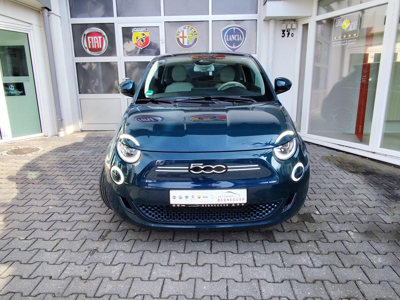 6 Lautsprecher, Ambiente-Beleuchtung, Armaturenbrett farbig (Wagenfarbe), Autom. Begleitfunktion der Beleuchtung (Follow me home), Außendekor: Schriftzug La Prima auf C-Säule, Außenspiegel Wagenfarbe, Einschaltautomatik für Fahrlicht Lichtsensor, Einstiegsleisten (verchromt), Elektromotor 87 kW (cont. 43 kW), Fahrassistenz-System: Aufmerksamkeits-Assistent, Fahrassistenz-System: Autonomer Notbrems-Assistent (AEB), Fahrassistenz-System: Fernlichtassistent, Fahrassistenz-System: Spurhalteassistent, Fahrassistenz-System: Verkehrszeichenerkennung, Fahrmodusschalter, Fensterheber elektr. vorn mit Komfortschaltung, Fensterzierleisten verchromt, Fußmatten, Getriebe für Elektrofahrzeug, Halterung Smartphone, Heckleuchten LED, Heckscheibe heizbar, HV-Batterie 42 kWh (Lithium-Ionen), Induktionsladeschale für Smartphone (Wireless Charging), Infotainment-System: UConnect 5 mit Navigationssystem, DAB+ und Bluetooth-Freisprecheinrichtung (Touchscreen 10, 25), Innenspiegel mit Abblendautomatik, Instrumentenanzeige Farbdisplay, 7 Zoll, Karosserie: 3-türig, Keyless-Entry & Go, Komfort-Paket, Kopfstützen hinten, Ladekabel mit Typ 2-Stecker (Mode 3), Lenkrad mit Multifunktion, Lenksäule (Lenkrad) höhenverstellbar, Memoryfunktion für Sitz vorn links, Mittelkonsole verschliessbar, Mobile Online Dienste UConnect Live, Notrufsystem (eCall), One Pedal Drive (elektronisches Gaspedal), Parkbremse elektrisch, Radioempfang digital (DAB+), Regen-Lichtsensor, Scheinwerfer LED, Schnellladefunktion 85 kW (DC), Seitenscheiben hinten und Heckscheibe abgedunkelt, Seitenschutzleisten mit Chrom-Applikationen, Sitz vorn links verstellbar (6-fach), Sitz vorn rechts verstellbar (6-fach), Sitzbezug Polsterung: Kunstleder, Smartphone Schnittstelle (Apple CarPlay & Android Auto), Sonnenblenden mit Spiegel (beleuchtet), Steckdose (12V-Anschluß) vorn, Uni-Lackierung Ice White, USB-Anschlüsse (Typ C und Typ A), USB-Schnittstelle,