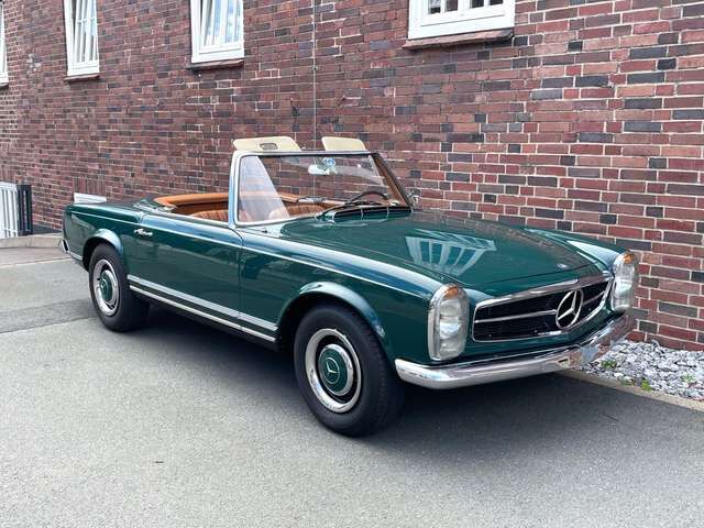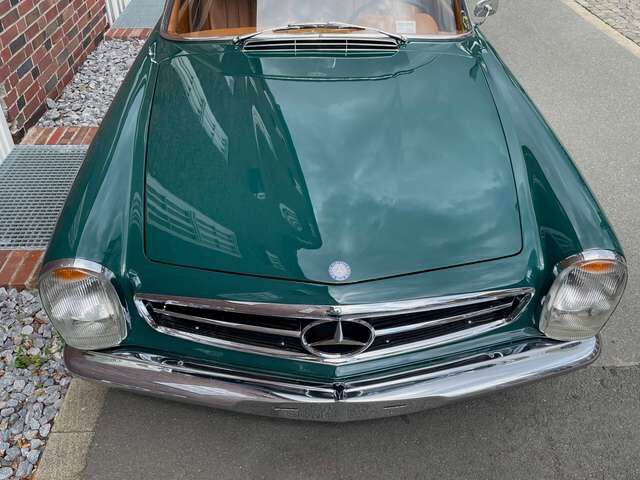 ? 1964 entschied sich der Erstbesitzer aus Coburg zum Kauf eins neuen Mercedes SL. Er bestellte sich einen SL der Baureihe W113 als 230 SL mit 150 PS. Bei der Lackierung entschied er sich für eine klassische Farbkombination, Karosserie in Dunkelgrün (Blaugrün) mit einem Hardtop in Schwarz und einer beigebraunen Innenausstattung.