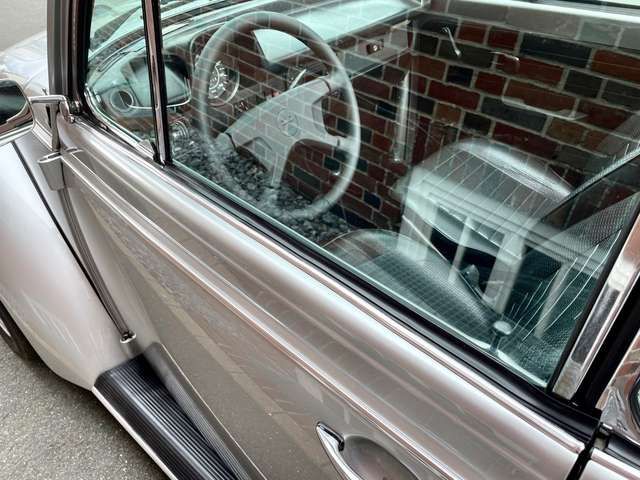 ? Heute muss man schon Glück haben, überhaupt noch ein schönes und original erhaltenes Käfer Cabrio zu bekommen. Die meisten Fahrzeuge wurden über die Jahre schon mehrfach restauriert und viele davon in schlechter Qualität.Dieses Käfer Cabrio hat Glück gehabt, es ist aktuell erst in dritter Hand und wurde wohl immer gut gehegt und gepflegt, denn es musste noch nicht restauriert werden und außer kleineren Schönheitsreparaturen und einer Neulackierung im originalen Diamantsilber waren keine größeren Arbeiten erforderlich.