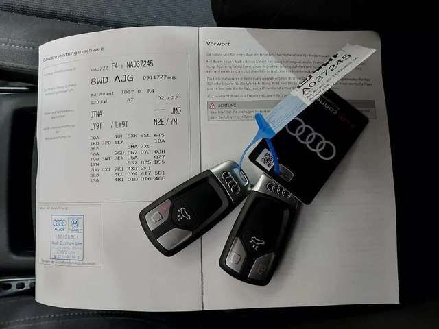 Airbag Beifahrerseite abschaltbar, Audi connect (Notruf- und Assistance-System), Außenspiegel Wagenfarbe, Blinkleuchten LED in Außenspiegel integriert, Dachhimmel Stoff, Dachreling schwarz, Einstiegsleisten mit Aluminiumeinlage, Fahrassistenz-System: City-Notbremsfunktion (Audi pre sense City), Fensterzierleisten schwarz, Frontscheibe Akustikglas, Funkschlüssel, Fußmatten Velours, Geschwindigkeits-Begrenzeranlage, Harnstofftank (SCR): 12 Ltr., Heckleuchten LED, Innenausstattung: Dekoreinlagen Akzentteile in der Armaturentafel schwarz matt, Innenausstattung: Dekoreinlagen Diamantlack silbergrau, Isofix-Aufnahmen für Kindersitz, Karosserie: 4-türig, Klimaautomatik, Kopf-Airbag-System (Sideguard), Leichtlaufreifen, LM-Felgen, Mild-Hybrid 120 kW (Motor 2, 0 Ltr. - 120 kW 16V TDI), Mild-Hybrid-Technologie, Modellpflege, Multi-Media-Interface MMI Basic Plus / MMI Radio Plus, Nichtraucher-Paket, Radioempfang digital (DAB), Reifen-Reparaturkit, Reifendruck-Kontrollsystem, Rücksitzlehne geteilt/klappbar (40:20:40), Schadstoffarm nach Abgasnorm Euro 6d-TEMP, Scheibenwaschdüsen heizbar, Scheinwerfer Basis (LED - Technologie), SCR-System (AdBlue-Technologie), Seitenairbag vorn, Sitze vorn manuell einstellbar, Standard-Fahrwerk, Start/Stop-Anlage, Stoßfänger Ausführung: Basis, Universal-Schnittstelle Bluetooth, Wendeladeboden (Ladeboden), Wärmeschutzverglasung grün getönt