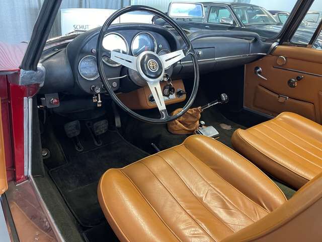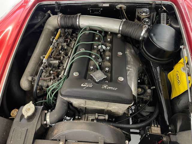 Der Alfa Romeo DOHC-Sechszylindermotor, der 145 PS leistet, ist ein technisches Meisterwerk seiner Zeit. Dieser Motor war einer der letzten von Alfa Romeo produzierten Sechszylinder mit doppelter obenliegender Nockenwelle, was ihn zu etwas Besonderem macht. Das Triebwerk bietet eine beeindruckende Leistung, die ausreicht, um sich mit Zeitgenossen wie dem Mercedes-Benz 230 SL zu messen. Das Fünf-Gang-Getriebe und die überarbeitete Hinterachse tragen zum Fahrvergnügen bei und sorgen dafür, dass sich der Wagen geschmeidig und kraftvoll auf der Straße anfühlt.