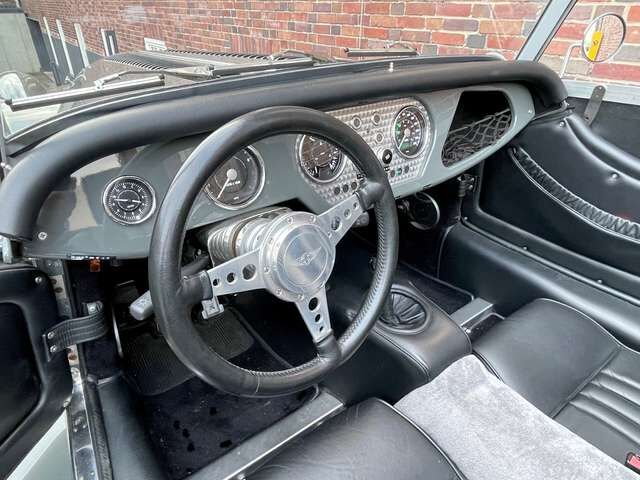? Bei der Neuwagenbestellung dieses Morgan Plus 4, hat der bis heute erste und einzige Besitzer ein gutes Händchen bewiesen. Die Lackierung in schlichtem Sportgrey kombiniert mit schwarzem Leder und schwarzen Speichenfelgen erinnert an die im Motorsport eingesetzten Morgan-Fahrzeuge, genauso wie das Armaturenbrett mit Aluminiumeinlage und dem typischen Sonnenschliff. Aufgewertet wurde der Plus 4 außerdem durch einen Heckgepäckträger, einstellbare Stoßdämpfer, MotoLita-Lenkrad, LED-Scheinwerfer und eine zweite Persenning aus Sonnenlandstoff.