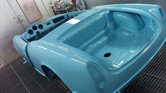 Außenfarbe Celeste, Innenausstattung Velours schwarz