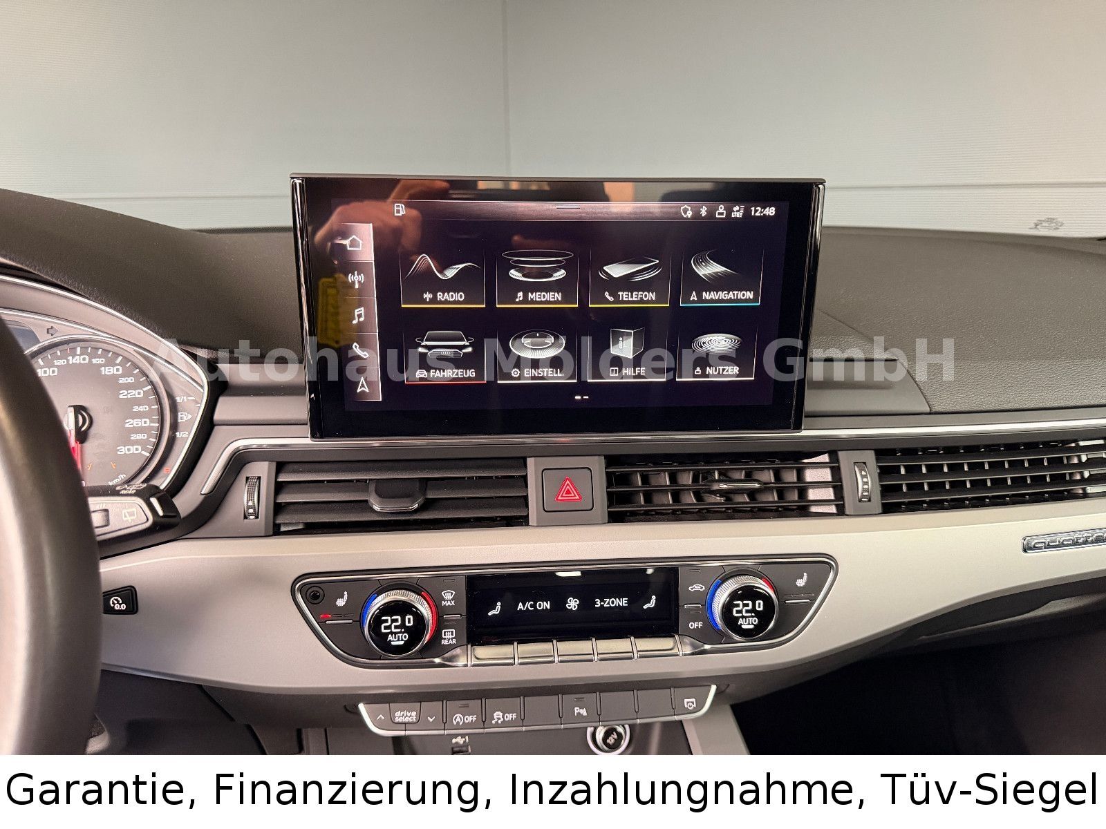 Anhängerkupplung schwenkbar, Klimaautomatik, Automatik, Allrad (Quattro), Alufelgen, Navigationssystem, LED-Scheinwerfer, Sitzheizung, Einparkhilfe vorne und hinten, Rückfahrkamera, Abstandstempomat, Licht- und Regensensor, Dachreling, Bluetooth, el.Fensterheber, el.Spiegel, Zentralverriegelung mit Funk, u.v.m., Der Kauf eines Gebrauchtwagens ist Vertrauenssache. Und da Ihr Vertrauen für uns das Wichtigste ist, haben wir uns etwas einfallen lassen. Das Rundum Sorglos Paket mit Mölders Dynamic Gütesiegel !! Es bietet Ihnen garantierte Sicherheit beim Gebrauchtwagenkauf. Bei Finanzierungen über 72 Monate ist eine verlängerte Garantie bis 48 Monate möglich!! Diese schützt Sie vor garantiebedingten Reparaturkosten in der Finanzierungsphase. Die Monatliche Rate bezieht sich auf den Auszeichnungspreis mit 20% Anzahlung und einer maximalen Ratenlaufzeit von 96 Monaten ohne Restzahlung.