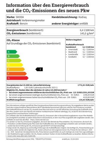 Interieur-Design-Paket Loft, Infotainment-Paket Basic, Anhngerkupplung Vorbereitung, Fahrassistenz-System: Spurwechselassistent inkl. Auspark-Assistent und Ausstiegswarnung, Auenspiegel und Trgriffe auen in Wagenfarbe, Scheinwerfer LED, Fahrassistenz-System: Verkehrszeichenerkennung, Heckleuchten LED, Licht- und Regensensor, Scheibenwaschdsen heizbar, Stofnger vorn mit Unique Dark Chrom-Applikationen, 8 Lautsprecher, USB-Schnittstelle vorn (2-fach, Typ C), Wireless SmartLink, Ambiente-Beleuchtung LED, Kombiinstrument digital (virtual cockpit plus), Bedienschalter Digitale Drehregler (Smart Dials), Einparkhilfe vorn und hinten, Airbag Fahrerseite, Seitenairbag vorn mitte (Center-Airbag), Kopf-Airbag-System, Seitenairbag vorn, Airbag Beifahrerseite abschaltbar, Mittelarmlehne hinten, Klimaanlage Climatronic 3-Zonen, Zusatzheizer (PTC), Sitzheizung vorn, Lehnenentriegelung der Rcksitzlehne im Kofferraum, Kopfsttzen vorn, Kopfsttzen hinten, Kindersicherung elektr. bettigt, Sicherheitsgurte vorn hhenverstellbar, 3-Punkt-Sicherheitsgurte hinten, Warnanlage fr Sicherheitsgurte, Fahrer-Beifahrerseite, Warnanlage fr Sicherheitsgurte hinten, Handschuhfach beleuchtet, Innenspiegel mit USB-Anschluss (Typ C), Innenspiegel mit Abblendautomatik, Sonnenblenden mit Spiegel (LED-Beleuchtung), Vorbereitung fr Alkohol-Wegfahrsperre (Alcolock), Steckdose (12V-Anschlu) im Koffer-Laderaum, Verzurrsen Koffer-Laderaum, Textilfussmatten, Brillenfach, Ablagefach fr Regenschirm, Rckfahrkamera, Induktionsladeschale fr Smartphone 15 W, Parkbremse elektronisch, Fahrassistenz-System: Abbiegebremsfunktion und Ausweichuntersttzung, Fahrassistenz-System: Auffahrwarnsystem mit City-Notbremsfunktion (Frontradar-Assistent), Fahrassistenz-System: Multikollisionsbremse (Multi Collision Brake), Fahrassistenz-System: Kreuzungs-Assistent (Crossroad Assist), Fahrassistenz-System: Spurhalteassistent (Lane Assist), Fahrassistenz-System: Mdigkeitserkennung, Reifen-Reparaturkit, Lenkrad (Leder) mit Multifunktion und Schaltfunktion, Lenksule (Lenkrad) verstellbar (vertikal axial), Elektron. Querdifferentialsperre (XDS), Schadstoffarm nach Abgasnorm Euro 6e, Otto-Partikelfilter (OPF), Mild-Hybrid-Technologie, Motor-Schleppmoment-Regulator (MSR), Karosserie: 5-trig, Radstand Standard, Getriebe 7-Gang - Doppelkupplungsgetriebe DSG, Mild-Hybrid 110 kW (Motor 1, 5 Ltr. - 110 kW TSI mHEV),