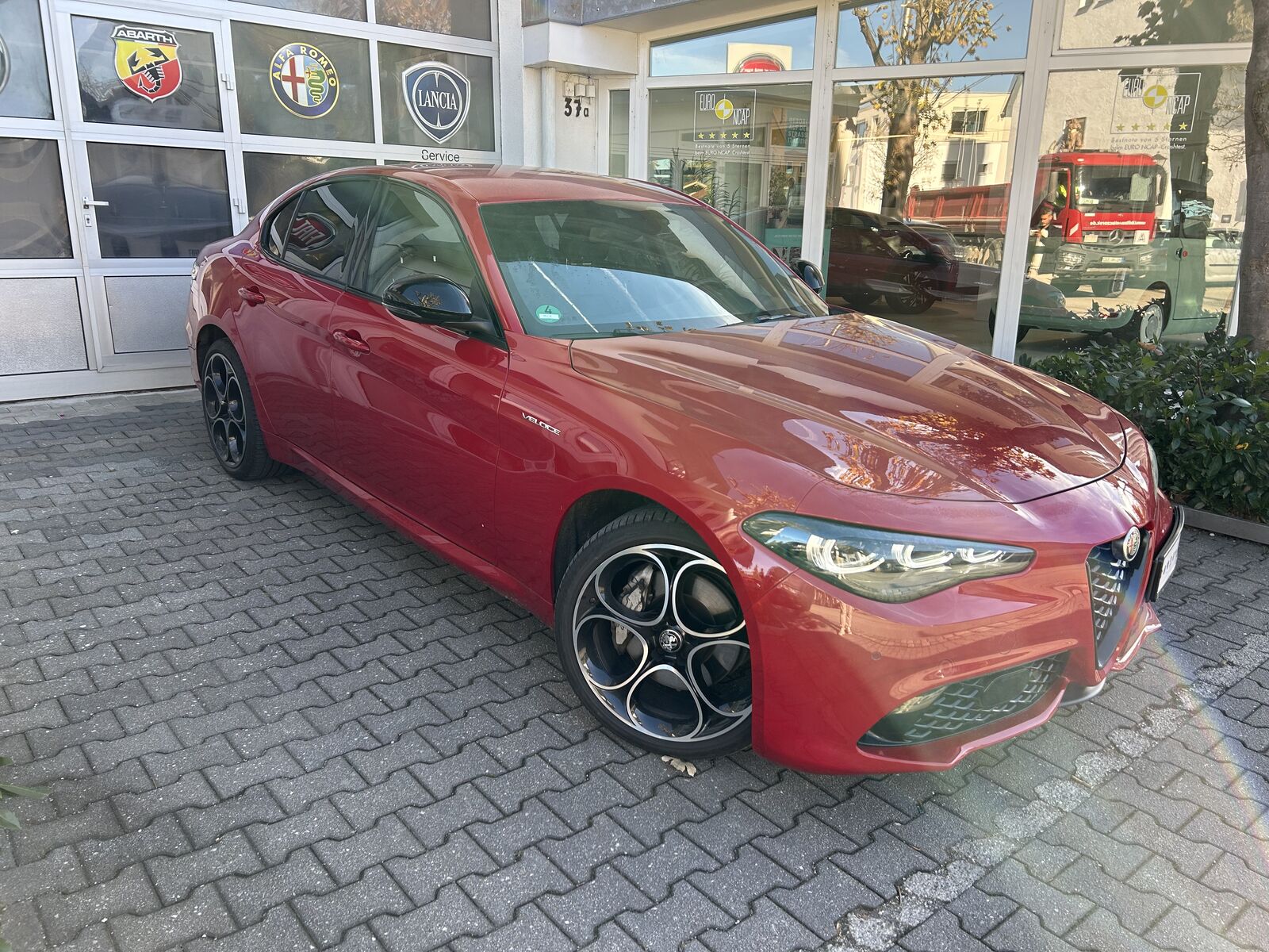 Adaptive Geschwindigkeitsregelanlage (Adaptive Cruise Control), Aktive Giermomentkontrolle (AYC), Anhnger-Stabilisierungs-Programm (TSA), Antriebsart: Heckantrieb, Audiosystem: Connect (Radio, MP3, AUX-IN, Bluetooth) mit 8, 8 Farbdisplay, Auenspiegel Wagenfarbe, Bi-Xenon-Scheinwerfer mit dynamischem Kurvenlicht (AFS), Blinkleuchten LED in Auenspiegel integriert, Bremslicht mit Notfallfunktion (Einschaltautomatik Warnblinkanlage), Dynamic Steering Torque (DST), Einstiegsleiste mit Schriftzug (Logo), Elektron. Bremskraftverteiler (EBD), Elektron. Traktionskontrolle, Fahrassistenz-System: Alfa Romeo D.N.A.-Fahrdynamik-System, Fahrassistenz-System: Autonomer Notbrems-Assistent (AEB), Fahrassistenz-System: Berganfahrhilfe (Hill-Holder), Fahrassistenz-System: Frontkollisionswarnung (FCW), Fahrassistenz-System: Spurhalteassistent (Lane Departure Warning), Fahrwerk Aktiv mit elektronischer Stodmpferregelung (Active Suspension), Fensterrahmen schwarz, Frontgrill Anthrazit, Frontscheibe infrarot-reflektierend, Fumatten, Getriebe Automatik - (8-Stufen), Getrnkehalter, Gurtstraffer, Handschuhfach mit Khlfunktion, Heckdiffusor, Heckleuchten LED, Infotainment-Center mit 7 Farbdisplay, Innenausstattung: Interieur dunkel, Dachsule und Dachhimmel in schwarz, Innenausstattung: Interieurleisten Mittelkonsole Aluminium, Innenspiegel mit Abblendautomatik, Karosserie: 4-trig, Klimaautomatik 2-Zonen, Kopfsttzen hinten, Kurvenbremskontrolle (CBC ESBS), Lenkrad heizbar, Lenksule (Lenkrad) verstellbar (vertikal axial), Licht- und Regensensor, Modellpflege, Motor 2, 0 Ltr. - 206 kW Turbo KAT, Motor-Schleppmoment-Regulator (MSR EDC), Otto-Partikelfilter (OPF), Parkbremse elektrisch, Radnabenabdeckungen, Radstand 2820 mm, Regen-Bremsassistent (RBA), Reifen-Reparaturkit, Reifendruck-Kontrollsystem, Rckfahrkamera, Schadstoffarm nach Abgasnorm Euro 6d, Schaltpunktanzeige (Gear Shift Indicator), Scheibenwaschdsen heizbar, Seitenscheiben hinten und Heckscheibe abgedunkelt, Servolenkung (Aktivlenkung), Sitze vorn elektr. verstellbar (6-fach), Sitzheizung vorn, Smartphone Schnittstelle (Apple CarPlay & Android Auto), Sport-Paket, Sport-Pedalerie, Start-Stop-Knopf, StartStop-Anlage, Steckdose (12V-Anschlu) in Mittelkonsole, Stofnger vorn und hinten im Veloce Design, Uni-Lackierung Alfa-Rot, Vehicle-Dynamic-Control (ESP VDC), Veloce, Verzurrsen im Koffer-Laderaum, Warnanlage fr Sicherheitsgurte,