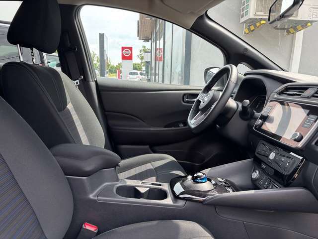 3. Bremsleuchte, Airbag Beifahrerseite, Airbag Fahrerseite, Akustischer Umfeldschutz (Außensound), Ambiente-Beleuchtung, Around View Monitor (360 Umgebungsansicht), Audiobedienung am Lenkrad, Ausstattungs-Paket: Nissan Connect EV, Autom. Begleitfunktion der Beleuchtung (Follow me home), Automatische Fahrlichtschaltung, Außenspiegel elektr. anklappbar, Außenspiegel elektr. verstellbar, Außenspiegel Wagenfarbe, Außentemperaturanzeige, B-Säulen schwarz, Blinkleuchte in Außenspiegel integriert, Bluetooth-Schnittstelle, Dachantenne im Haifischflossen-Design, Elektr. Bremskraftverteilung (EBD), Elektromotor 110 kW (cont. 90 kW), Fahrassistenz-System: aktiver Spurhalteassistent, mit korrigierendem Bremseingriff, Fahrassistenz-System: Autonomer Notbrems-Assistent, Fahrassistenz-System: Berganfahr-Assistent, Fahrassistenz-System: Fernlichtassistent, Fahrassistenz-System: Park-Assistent mit 360 Bewegungssensoren, Fahrassistenz-System: Querverkehrs-Assistent Heck (Rear Cross Traffic Alert, RCTA), Fahrassistenz-System: Spurwechselassistent, Fahrassistenz-System: Totwinkel-Assistent, Fahrassistenz-System: Verkehrszeichenerkennung, Fahrer-Informations-System (FIS) mit Farbdisplay, Fensterheber elektrisch vorn + hinten, Frontscheibe Verbundglas, Getränkehalter hinten, Getränkehalter in Mittelkonsole, Getränkehalter vorn, Gurtstraffer, Handschuhfach beleuchtet, Heckleuchten LED, Heckscheibe heizbar, HV-Batterie 40 kWh, Innenspiegel mit Abblendautomatik, Isofix-Aufnahmen für Kindersitz, Karosserie: 5-türig, Klimaautomatik, Kofferraumabdeckung, Kopf-Airbag-System, Kopfstützen vorn und hinten verstellbar, Ladekabel mit Schukostecker (Mode 2), Ladekabel mit Typ 2-Stecker (Mode 3), Ladevorrichtung Wechselstrom (bis 6, 6 kW), Lenksäule (Lenkrad) höhenverstellbar, LM-Felgen, Nebelschlussleuchte, Parkbremse elektrisch, Pedalerie elektr. einstellbar, Pro Pilot-Paket, Reifendruck-Kontrollsystem, Rücksitz geteilt/klappbar, Schnellladevorrichtung, Seitenairbag, Sitz vorn links höhenverstellbar, Sitzbezug / Polsterung: Stoff, Smartphone Schnittstelle (Apple CarPlay & Android Auto), Sonnenblenden mit Spiegel (beleuchtet), Start-Stop-Knopf, Steckdose (12V-Anschluß) in Mittelkonsole, Türgriffe außen verchromt, Uni-Lackierung, Verglasung hinten abgedunkelt, Wärmepumpe zur Reichweitenoptimierung, Wärmeschutzverglasung mit UV-Schutz