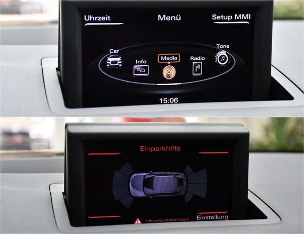 Optisch ein Sahnestück mit Scuba Blau Metallic, silbernem Dachbogen, schwarzem Dachhimmel und Audi exclusive Details.