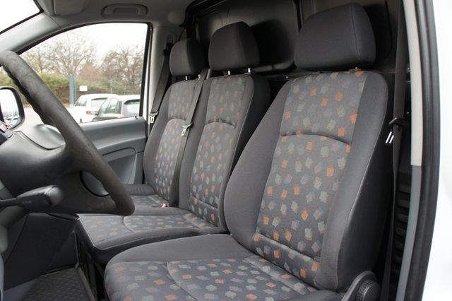 Weitere Ausstattung:Airbag Fahrerseite, Ausführung: Vito Kasten, Außenspiegel asphärisch, beide, Batterie 74 Ah, Bremsassistent, Generator 200 A, Heckklappe, Innenraumfilter: Pollenfilter, Karosserie/Aufbau: extra lang, Karosserie/Aufbau: Kasten Standard, Lenkrad (Lenksäule mech. verstellbar), LKW-Zulassung, Motor 2, 1 Ltr. - 70 kW CDI, Nebelschlussleuchte, Radstand 3430 mm, Schadstoffarm nach Abgasnorm Euro 4 Gr. III, Wartungsintervall-Anzeige Assyst