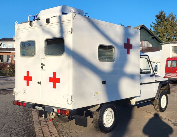 Einmalige Gelegenheit! 1 von 2.272 gebauten Fahrgestellen der Baureihe W461 !! Wir bieten hier einen seltenen 290GD Fahrgestell mit Krankenwagenkoffer an! Original nur 2.225 km gefahren! Das Fahrzeug kommt aus 1.Schweizer Hand. Ausgemustert als Reservekrankenwagen des Schweizer Militär. Diese Gelegenheit bekommt man nicht wieder. Oldtimer 1994mit H-Kennzeichen in allen Umweltzonen fahrbar! Günstige Oldtimer Versicherung und KFZ Steuer. Original Zustand. Wir haben diesen wunderschönen 290GD direkt aus der Schweiz importiert. Auf Wunsch wird eine Vollabnahme mit deutscher Zulassung durchgeführt. Service und Durchsicht werden gerade in unserer Werkstatt durchgeführt. Radstand 3.120 mm ! Ideal umzubauen als Fernreisemobil oder oder... Die Ausstattung als Krankenwagen ist original verbaut und wurde nicht verändert. Weitere Bilder folgen. Der solide 5-Zylinder OM602 Diesel ist einer der besten Motoren von Mercedes-Benz! Dieser Wagen wurde in der Schweiz als PUCH 290 GD ausgeliefert. Als PUCH Version sind nur 585 Fahrzeuge ausgeliefert worden. Sie erwerben hier ein absolut seltenes Fahrzeug im Bestzustand! Zuschaltbarer Allrad mit Geländeuntersetzung und 2 Differentialsperren! 5-Gang Schaltgetriebe! Solide und für die Ewigkeit gebaut!