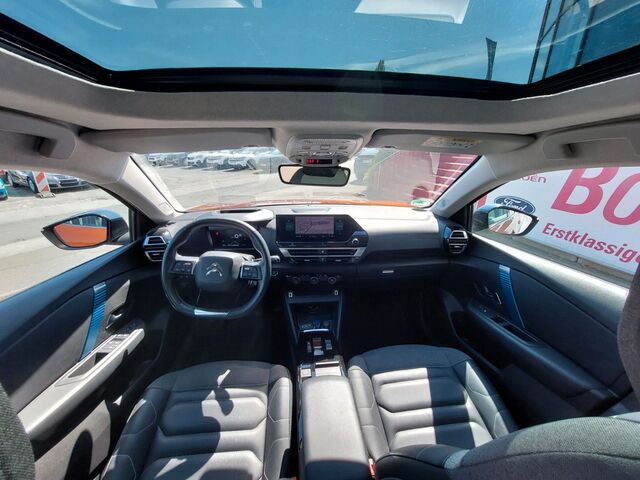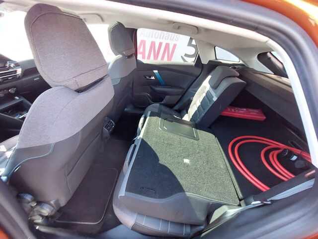 Airbag Beifahrerseite, Airbag Beifahrerseite abschaltbar, Airbag Fahrerseite, Audio-Navigationssystem: Connect Nav mit digitalem Radioempfang DAB / DAB+, Außenspiegel elektr. verstell-, heiz- und anklappbar, Außenspiegel schwarz, Bordcomputer, Citroen Smart Pad Universal, Connecting-Box, Drive-Assist-Paket, Elektromotor 100 kW (cont. 57 kW), Fensterheber elektrisch hinten, Freisprecheinrichtung Bluetooth, Head-up-Display, Innenspiegel mit Abblendautomatik, Isofix-Aufnahmen für Kindersitz an Rücksitz, Karosserie: 5-türig, Klimaautomatik, Fahrer-/Beifahrerseite getrennt regelbar, Kopf-Airbag-System, Kopf-Airbag-System hinten, Ladekabel mit Typ 2-Stecker (Mode 2), Ladevorrichtung On-Board-Lader 11 kW, Lendenwirbelstütze manuell verstellbar, Lenksäule (Lenkrad) mech. höhen-/längsverstellbar, LM-Felgen, Mittelkonsole mit Ablagefach, Parkbremse elektrisch, Reifen-Reparaturkit, Rückfahrkamera mit 180 Umgebungsansicht, Rücksitzbank / Lehne klappbar 1/3-2/3 (nicht verschiebbar), Seitenairbag vorn, Seitenschutzflächen stoßabsorbierend, Black (Airbump), Sitz vorn links höhenverstellbar, Sitz vorn rechts höhenverstellbar, Sitzbezug / Polsterung: Leder / Stoff Metropolitan Grey, Style-Paket