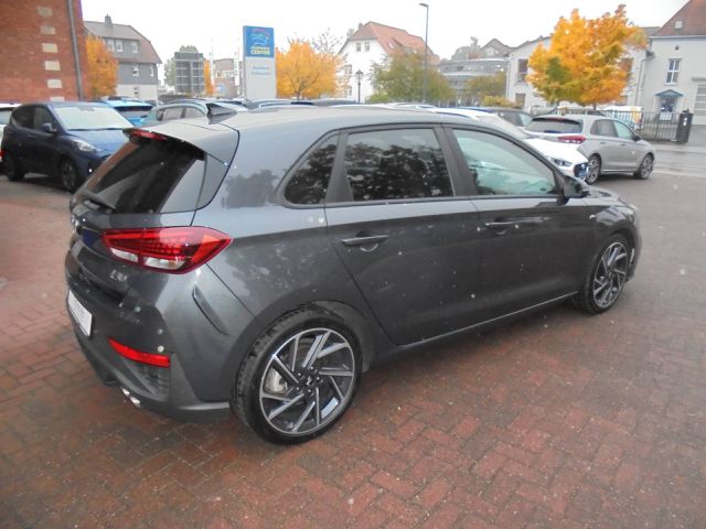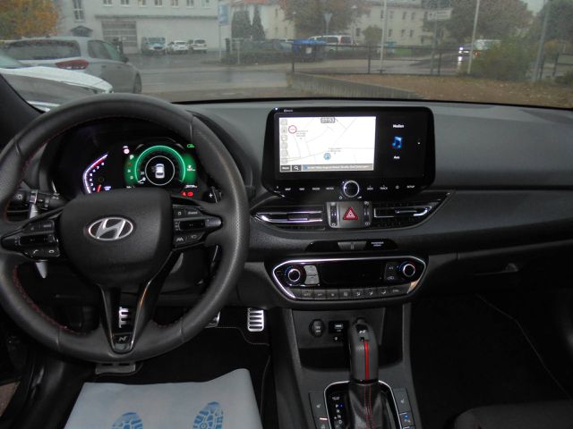 Außenfarbe Dark Knight, N-Line Ausstattung, Panoramadach, 48V-Hybridsystem - Unterstützt den Ver-, brennungsmotor beim Anfahren - Reduzierung von, Spritverbrauch und CO2-Emission, Ermöglicht die Start-Stopp-Funktion auch während, des Fahrbetriebs - Nutzung von Rekuperationsenergie, für die Wiederaufladung der 48V-Batterie, Reines elektrisches Fahren ist nicht möglich, Abbiegelicht statisch, Ablagen - Fach in der Mittelkonsole des Amaturen-, bretts - Ablagetaschen an der Rückseite der Vorder-, sitze - Fächer in den Türen - Getränkehalter vorne, Getränkehalter hinten - Brillenablagefach, Adaptives Bremslicht (ESS), Airbags: Fahrer- und Beifahrerseite, Beifahrerairbag, deaktivierbar, Seitenairbags vorn in der Sitzlehne des, Vordersitzes, Vorhangairbags vorn und hinten bis in, den Fond reichend, Alarmanlage, Assistenten: Antiblockiersystem mit elektronischer, Bremskraftverteilung (EBV), Aufmerksamkeits-, assistent (DAW), Berganfahrhilfe, Bremsassistent, Einparkhilfe hinten und vorne, Fernlichtassistent, Außenspiegel elektrisch anklappbar und von innen, einstellbar und beheizbar, Außenspiegel in Schwarz, lackiert, Außenspiegel mit integrierten LED-Blink-, leuchten, Ausstiegswarner (SEW), Autobahnassistent 1.5 (HDA 1.5), Automatisches Notrufsystem (eCall), Dachhimmel in Schwarz, Dachspoiler mit 3. Bremsleuchte, Digitales Cockpit mit 10, 3-Zoll-Farb-Display, Drive Modes (Eco, Normal, Sport) und CUSTOM Mode, Einstiegsleisten in Aluminiumoptik, Elektrisches Stabilitätsprogramm (ESC) und Fahr-, dynamisches Stabilitätsmanagement (VSM), Fensterheber elektrisch - mit Abwärts-/Aufwärts-, automatik und Einklemmschutz, Fensterrahmeneinfassung in Schwarz, Frontscheibe mit Sonnenschutzkeil, Gepäcknetz, Gepäckraumabdeckung, Gepäckraumbeleuchtung, Getriebe: DCT 7-Gang-Doppelkupplungsgetriebe, Heckscheibe, beheizbar, mit Abschaltautomatik, Heckscheibenwischer mit Intervallschaltung, Innenspiegel, automatisch abblendend, Interieur: Schwarz, Isofix-Kindersitzbefestigung hinten auf den äußeren, Sitzplätzen inkl. Top-Tether-Verankerungspunkten, Kindersicherung in den hinteren Türen, Klimaautomatik 2-Zonen - mit automatischer Innen-, bschlagsregelung, Kopfstützen (5) vorn und hinten höhenverstellbar, längsverstellbar vorne, Lackierung: Uni, LED Licht Innenraum, LED Voll-Scheinwerfer, LED-, Rückleuchten, LED-Tagfahrlicht, Lenkrad: Lenkrad beheizbar, Multifunktion Drei-, speichenlenkrad, N-Line Sportlenkrad in Leder - N, -Line Lederschaltknauf, Leseleuchte vorn und hinten, Leuchtweitenregulierung, manuell, Lichtsensor, Mittelarmlehne hinten, mit Durchlademöglichkeit, Mittelarmlehne vorn mit Ablagefach, verschiebbar, Motorhaubendämmerung, N Line Exterieur - Abgasanlage mit Doppelendrohr, - N Line Embleme auf den vorderen Kotflügeln -N, Line Frontschürze -N Line Heckschürze mit integrier-, tem Diffusor -Silberne Zierleiste an der Frontschürze, Silberne Zierleiste an der Heckschürze -N Line Kühler, -grill, Navigationsbasierte adaptive Geschwindigkeitsregel-, anlage (NSCC) mit Abstandsregelung (DCT), Notbremsassistent 1.5 (FCA 1.5) inkl. Abbiegefunktion, (FAC-JT), Partikelfilter: Ottopartikelfilter, Polster: Stoff, Privacy-Verglasung - dunkel getönte Scheiben ab, B-Säule, Querverkehrassistent (RCCA), Räder: (4) Leichtmetallfelgen 7, 5 J x 18 Reifen, 225/40 R 18, Reifendruckkontrollsystem, Radio: Radio-Navigationssystem - 10, 3 -Zoll-Display-, Navigationssystem - Digitalradio (DAB+) -Apple, CarPlay und Android Auto (kabelgebunden) -6 Laut-, sprecher -Bluelink-Connect -Lifetime MapCare -LIVE, Services - Over-the-Air-Upadates - Bluetooth-Frei-, sprecheinrichtung -USB-C Anschlüsse vorne und hinten, RDS-Radio mit USB-Anschluss - Digitaler Radio-, empfang (DAB+), Radiozubehör: 6 Lautsprecher inkl. 2 Hochtöner vorne, Regensensor, Reifenreparaturset, Rückfahrkamera, Servolenkung, Sicherheitsgurte i30 -3 Punkt-Automatikgurte auf allen, Sitzplätzen, vorn höhenverstellbar -Gurtstraffer und, Gurtkraftbegerenzer vorn -Warnleuchte und Warnton, bei nicht angelegtem Sicherhe