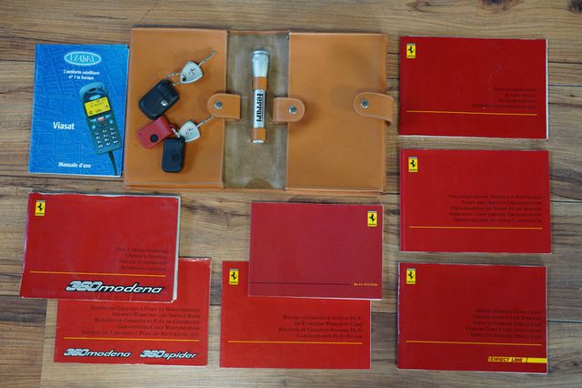 Der Ferrari ist unfallfrei und weist keinerlei Nachlackierungen auf. Die Bordmappe mit Bedienungsanleitungen und Serviceheft, das Bordwerkzeug, ein Paletot und das Pannenset ist vollständig vorhanden.