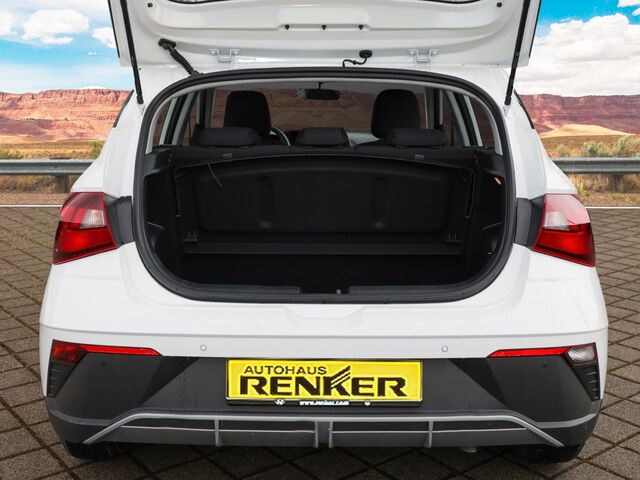 Der i20 überzeugt durch sein dynamisches und funktionales Erscheinungsbild. Die sportliche 5-türige Karosserie mit Dachspoiler in Wagenfarbe und dem modernen mattlackierten Kühlergrill verleiht ihm eine markante Präsenz. Die getönte Verglasung rundet das elegante Design ab. Im Innenraum punktet das Fahrzeug mit hoher Flexibilität: Eine geteilte und klappbare Rücksitzlehne sowie ein großzügiger Kofferraum mit praktischem Ablagerollo machen es zum perfekten Partner für Einkäufe, Freizeitaktivitäten oder Reisen. Die Kombination aus Rückfahrkamera und hinterer Einparkhilfe sorgt für sicheres und stressfreies Einparken auch in engen Lücken.
