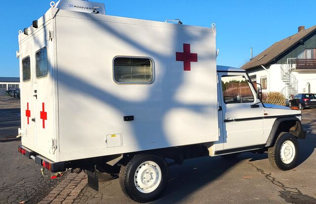Einmalige Gelegenheit! 1 von 2.272 gebauten Fahrgestellen der Baureihe W461 !! Wir bieten hier einen seltenen 290GD Fahrgestell mit Krankenwagenkoffer an! Original nur 2.225 km gefahren! Das Fahrzeug kommt aus 1.Schweizer Hand. Ausgemustert als Reservekrankenwagen des Schweizer Militär. Diese Gelegenheit bekommt man nicht wieder. Oldtimer 1994mit H-Kennzeichen in allen Umweltzonen fahrbar! Günstige Oldtimer Versicherung und KFZ Steuer. Original Zustand. Wir haben diesen wunderschönen 290GD direkt aus der Schweiz importiert. Auf Wunsch wird eine Vollabnahme mit deutscher Zulassung durchgeführt. Service und Durchsicht werden gerade in unserer Werkstatt durchgeführt. Radstand 3.120 mm ! Ideal umzubauen als Fernreisemobil oder oder... Die Ausstattung als Krankenwagen ist original verbaut und wurde nicht verändert. Weitere Bilder folgen. Der solide 5-Zylinder OM602 Diesel ist einer der besten Motoren von Mercedes-Benz! Dieser Wagen wurde in der Schweiz als PUCH 290 GD ausgeliefert. Als PUCH Version sind nur 585 Fahrzeuge ausgeliefert worden. Sie erwerben hier ein absolut seltenes Fahrzeug im Bestzustand! Zuschaltbarer Allrad mit Geländeuntersetzung und 2 Differentialsperren! 5-Gang Schaltgetriebe! Solide und für die Ewigkeit gebaut!