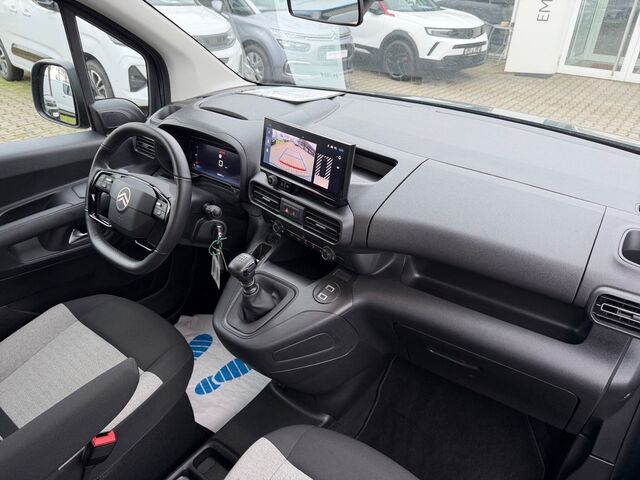 Dieser gepflegte CitroÃn Berlingo aus 2024 präsentiert sich in attraktivem Blau-Metallic mit nur einem Vorbesitzer. Der 110 PS starke 3-Zylinder Benzinmotor (1199 ccm) mit Frontantrieb und Schaltgetriebe bietet eine gute Kombination aus Leistung und Wirtschaftlichkeit. Mit einer Nutzlast von 609 kg und einer gebremsten Anhängelast von 1150 kg ist er vielseitig einsetzbar. Der Innenraum in Grau mit Stoffbezügen bietet Platz für 5 Personen und überzeugt mit praktischen Details wie umklappbarem Beifahrersitz und Laderaumtrennung. Die manuelle Klimaanlage, beheizte Sitze und das beheizte Lenkrad sorgen für Komfort in jeder Jahreszeit.