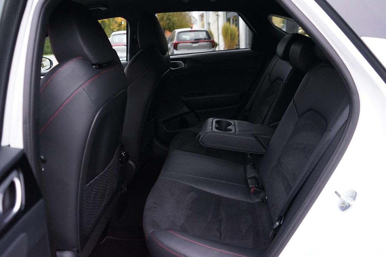 Türverkleidung vorn mit roten Kontrastnähten • Mittelarmlehne vorne und hinten (hinten mit integrierten Getränkehalter)