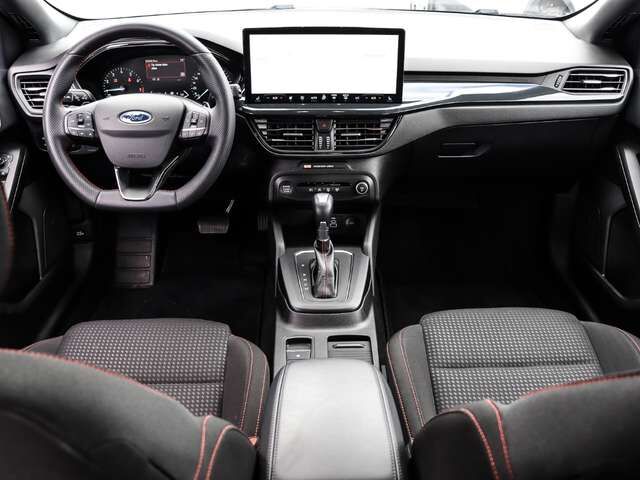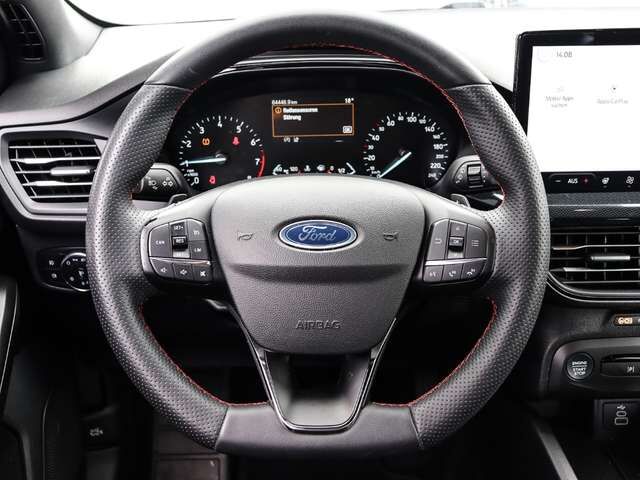 • Weiteres: Reifendruck-Kontrollsystem, Geschwindigkeits-Regelanlage (Tempomat), Schalt-/Wählhebelgriff Leder, Lenksäule (Lenkrad) höhen-/längsverstellbar, Scheibenwischer mit Regensensor, Reifen-Reparaturkit, Verglasung getönt, Heckleuchten LED, Sportsitze vorn, Fensterheber elektrisch vorn + hinten mit Komfortschließung, Rücksitzlehne geteilt/klappbar (60:40), Dachreling schwarz, LM-Felgen, Schadstoffarm nach Abgasnorm Euro 6d, Mild-Hybrid 92 kW (Motor 1, 0 Ltr. - 92 kW EcoBoost), Innenraumfilter: Staub- und Pollenfilter, Scheinwerfer-Assistent mit Tag-/Nachtsensor, Ford SYNC 3 mit Navigation, My Key (2. Fahrzeugschlüssel programmierbar), Audio-Navigationssystem Ford SD (mit Ford SYNC 4 und Touchscreen-Farbdisplay), Mittelkonsole Premium, Scheinwerfer LED, Sitz vorn links höhenverstellbar, Frontscheibe heizbar, Airbag Fahrer-/Beifahrerseite, Anti-Blockier-System (ABS), Lenkrad mit Schaltwippen, Tagfahrlicht LED, Seitenairbag vorn, Außenspiegel elektr. verstell- und heizbar, Antischlupfregelung (ASR), Gepäckraumabdeckung / Rollo, Parkpilotsystem vorn und hinten, Parkbremse elektrisch mit Auto-Hold-Funktion, Getriebe 7-Gang - Doppelkupplungsgetriebe, Intelligenter Geschwindigkeits-Begrenzer, Metallic-Lackierung, 12V-Steckdose im Laderaum, Audiobedienung am Lenkrad, Auffahrwarnsystem, Außenspiegel elektr. anklappbar, Beifahrerairbag abschaltbar, Berg-Anfahr-Assistent (Hill-Holder), Blinkleuchte in Außenspiegel integriert, Body-Styling-Paket, Bord-/Verbrauchscomputer, Bremsassistent, Dachspoiler in Wagenfarbe, Doppelendrohr Abgasanlage, Elektr. Bremskraftverteilung (EBD), Elektron. Stabilitäts-Programm, Farbdisplay (8 Zoll), Farbdisplay für Bordcomputer, Fußmatten Velours - vorn, Geschwindigkeits-Begrenzeranlage, Getränkehalter vorn, Gurtstraffer, Gurtwarner hinten, Innenspiegel mit Abblendautomatik, Intelligent Protection System (IPS), Isofix-Aufnahmen für Kindersitz, Klimaautomatik 2-Zonen, Kopf-Schulter-Airbag vorn und hinten, Kopfstützen hinten, Laderaumboden verstellbar, Lendenwirbelstütze vorn links, Lenkrad heizbar, Nebelscheinwerfer LED, Nebelscheinwerfer mit statischem Abbiegelicht, Post-Collision-System, Power KeyFree-Startfunktion, Pre-Collision-System, Radioempfang Digital (DAB), Schalt-/Wählhebelgriff Aluminium, Schaltpunktanzeige, Scheinwerfer mit Ausschaltverzögerung, Schwellerverbreiterung, Servolenkung elektrisch, Sicherheitssystem SYNC mit automatischem Notruf, Sitzheizung vorn, Sonnenblende rechts mit Spiegel, Sport/Leder-Lenkrad ST, Sport-Fahrwerk, Sprachsteuerung und Bluetooth-Schnittstell