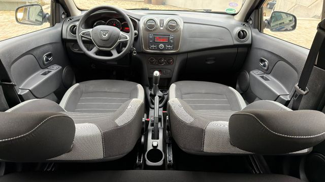Airbag Beifahrerseite, Airbag Beifahrerseite abschaltbar, Airbag Fahrerseite, Antischlupfregelung (ASR), Audiosystem: Radio-CD (MP3-fähig) mit AUX-IN, USB-Anschluss und Bluetooth (Dacia Plug & Radio), Außenspiegel mech. von innen verstellbar, beide, Außenspiegel Titanoptik, Außentemperaturanzeige, Bordcomputer, Bremsassistent, Dachreling Chrom, satiniert, Eco Mode (Fahrmodusschalter), Elektr. Bremskraftverteilung, Fahrassistenz-System: Berganfahr-Assistent (HSA), Fahrwerk erhöht, Gepäck-/Laderaumleuchte, Gepäckraumabdeckung, Heckscheibe heizbar, Heckscheibenwischer, Isofix-Aufnahmen für Kindersitz an Rücksitz, Karosserie: 5-türig, Kopfstützen hinten mechan. verstellbar (3 Stück), Modellpflege, Motor 0, 9 Ltr. - 66 kW TCE KAT, Raucher-Paket, Reifen-Reparaturset, Reifendruck-Kontrollsystem, Rücksitzbank (2.Reihe) geteilt, klappbar (1/3-2/3), Schadstoffarm nach Abgasnorm Euro 6, Schaltpunktanzeige, Seitenairbag vorn, Start/Stop-Anlage, Stepway, Stoßfänger Wagenfarbe, Türverriegelung automatisch, Verglasung getönt