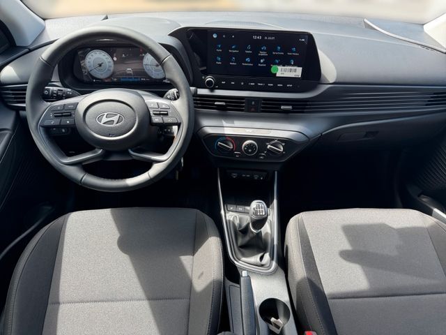 6 Lautsprecher, Airbag Beifahrerseite, Airbag Beifahrerseite abschaltbar, Airbag Fahrerseite, Ambiente-Beleuchtung, Audio-Navigationssystem, Audiosystem: Radio RDS, Außenspiegel elektr. anklappbar, Außenspiegel elektr. verstell- und heizbar, beide, Außenspiegel lackiert, Blinkleuchte in Außenspiegel integriert, Bordcomputer, Dachspoiler, Dachspoiler Wagenfarbe, Einparkhilfe hinten, Einschaltautomatik für Fahrlicht / Lichtsensor, Elektron. Stabilitätskontrolle (ESC) mit Bremsassistent, Fahrassistenz-System: aktiver Spurhalteassistent (LKAS, Lane Keep Assist System), Fahrassistenz-System: Aufmerksamkeits-Assistent, Fahrassistenz-System: Autonome Notbremsfunktion inkl. Frontkollisionswarnung (FCA), Fahrassistenz-System: Berganfahrhilfe, Fahrassistenz-System: Fahrprofilauswahl (Drive Mode), Fahrassistenz-System: Fernlichtassistent, Fahrassistenz-System: Insassenalarm (Rear Occopant Alert, ROA), Fahrassistenz-System: Multikollisionsbremse (Multi Collision Brake), Fahrassistenz-System: Sicherheitssystem mit automatischem Notruf (ERA GLONASS / eCall), Fahrassistenz-System: Verkehrszeichenerkennung, erweitert (Geschwindigkeits-Regel-/Begrenzeranlage), Fensterheber elektrisch hinten, Freisprecheinrichtung Bluetooth, Funktions-Paket, Gepäck-/Laderaumleuchte, Gepäckraumabdeckung / Rollo, Gurtstraffer, Heckscheibe heizbar, Induktionsladeschale für Smartphone, Karosserie: 5-türig, Kopf-Airbag-System, Kopfstützen hinten verstellbar, Kühlergrill schwarz (glanzlackiert), Lenkrad heizbar, Lenksäule (Lenkrad) höhenverstellbar, Lenksäule (Lenkrad) längsverstellbar, LM-Felgen, Modellpflege, Motor 1, 0 Ltr. - 74 kW TGDI KAT, Otto-Partikelfilter (OPF), Radioempfang digital (DAB+), Reifen-Reparaturkit, Reifendruck-Kontrollsystem, Rückfahrkamera, Rücksitzlehne geteilt/klappbar, Schadstoffarm nach Abgasnorm Euro 6e, Seitenairbag vorn, Service-System: Remote Services (Blue Link), Sicherheitsgurte vorn höhenverstellbar, Sitz vorn links höhenverstellbar, Sitzbezug / Polsterung: Stoff, Sitzheizung vorn, Sonnenblenden mit Spiegel (beleuchtet), Start/Stop-Anlage, Steckdose (12V-Anschluß) vorn, Türgriffe außen Wagenfarbe, USB-Anschluss (Typ C), USB-Anschluss hinten, USB-Anschluss hinten (Typ C), USB-Anschluss Mittelkonsole, Verglasung getönt, Warnanlage für Sicherheitsgurte, Fahrer-/Beifahrerseite, Wireless SmartLink (Apple CarPlay)