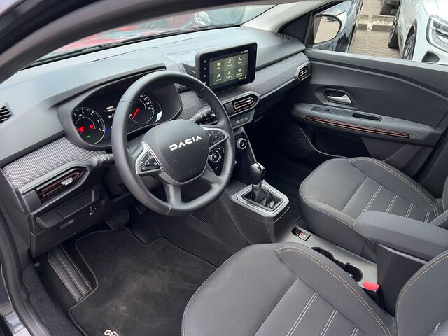 Dieser gepflegte Dacia Sandero aus 2023 präsentiert sich in elegantem Grau-Metallic und überzeugt mit nur einem Vorbesitzer sowie lückenloser Servicehistorie. Der sparsame 3-Zylinder Benzinmotor mit 999 ccm und 91 PS bietet dank Frontantrieb und Automatikgetriebe ein komfortables Fahrerlebnis. Die umfangreiche Ausstattung umfasst ein Navigationssystem, automatische Klimaanlage und zahlreiche Fahrassistenzsysteme wie Berganfahrhilfe, Kollisionsvermeidung und Tempomat. Im Innenraum erwarten Sie Stoffsitze in Schwarz, ein Multifunktionslenkrad mit Lederbezug und Ambiente-Beleuchtung. Die moderne Konnektivität wird durch Apple CarPlay, Android Auto und Bluetooth gewährleistet.