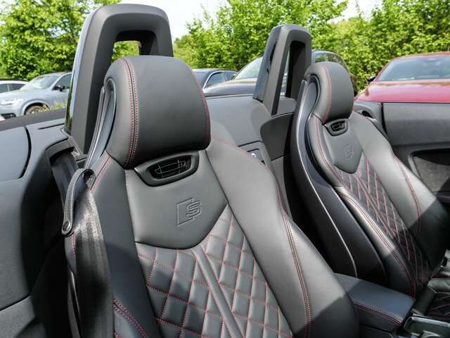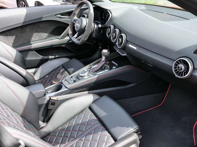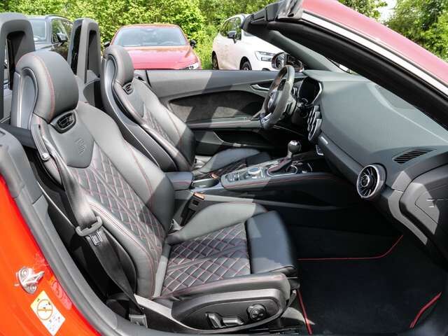 • Weiteres: Getriebe 7-Gang - Doppelkupplungsgetriebe S-tronic, Kopf-Airbag-System (Sideguard), Wärmeschutzverglasung grün getönt, Start/Stop-Anlage, Sitzheizung vorn, Isofix-Aufnahmen für Kindersitz an Beifahrersitz, Lenkrad (Sport/Leder - 3-Speichen, unten abgeflacht) mit Multifunktion und Schaltfunktion, Kombiinstrument digital (virtual cockpit plus), Schadstoffarm nach Abgasnorm Euro 6d, Airbag Beifahrerseite abschaltbar, Scheinwerfer-Reinigungsanlage (SRA), Scheinwerfer LED, Sitzbezug / Polsterung: Alcantara / Leder mit Logo-Prägung in Vordersitzlehnen, Ambiente-Beleuchtung, Audi Smartphone Interface, Bluetooth-Freisprecheinrichtung mit Spracherkennung (Audi Phone Box), Rückfahrkamera, Innenspiegel mit Abblendautomatik, Geschwindigkeits-Regelanlage (Tempomat), Komfort-Klimaautomatik 2-Zonen, Einparkhilfe vorn und hinten, akustisch und optisch mit selektiver Anzeige (APS Plus), Kopfraumheizung, Mittelarmlehne vorn, Sitzbezug / Polsterung: Leder Feinnappa mit Logo-Prägung in Vordersitzlehnen, Sound-System Bang & Olufsen, Sitze vorn elektr. verstellbar, LM-Felgen, Anti-Blockier-System (ABS), Tagfahrlicht LED, Fensterheber elektrisch vorn, Wegfahrsperre (elektronisch), Außenspiegel elektr. verstell- und heizbar, Reifenkontroll-Anzeige, Licht- und Regensensor, Seitenairbag vorn, Airbag Fahrer-/Beifahrerseite, Metallic-Lackierung, Heckleuchten LED mit dynamischem Blinklicht, Lenkradkranz Audi exclusive Alcantara/Leder mit 12-Uhr-Markierung (Zusatz-AV zum Lenkrad), 12V-Steckdose im Laderaum, Ablage- und Gepäckraum-Paket, Akustik-Verdeck, Antriebs-Schlupfregelung (ASR) mit EDS, Audi Drive Select, Audi music interface, Ausstattungs-Paket: Technology Selection, Ausstattungs-Paket: TTS Competition Plus, Blinkleuchten LED in Außenspiegel integriert, Bluetooth-Schnittstelle, Bremssättel Rot lackiert, Dachhimmel in Stoff, Einstiegsleisten mit Aluminiumeinlage und Schriftzug, Elektron. Stabilitätskontrolle (ESC), Erweiterte Aluminium-Optik, Fahrwerk mit Dämpferregelung (Magnetic Ride), Gepäckraum-Trennnetz, Heckflügelspoiler, Heckscheibe heizbar, Innenausstattung: Dekoreinlagen Carbon Köper, Komfortschlüssel, Leder-Paket, Leder-Paket erweitert, Lendenwirbelstützen elektr. verstellbar, Lendenwirbelstützen vorn, pneumatisch verstellbar, Licht-Paket, Matrix-LED-Scheinwerfer, Motor 2, 0 Ltr. - 235 kW 16V TFSI, Multi-Me