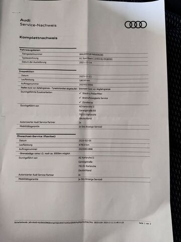 Airbag Beifahrerseite abschaltbar, Airbag Fahrer-/Beifahrerseite, Anzeige für Wasserstand (Wischanlage), Außenspiegel Wagenfarbe, Dachkantenspoiler S-line, Dachkuppel Wagenfarbe, Einstiegsleisten mit Aluminiumeinlage und Schriftzug, Fahrassistenz-System: Berganfahr-Assistent, Fahrassistenz-System: Bremsassistent (Audi pre sense front), Fahrassistenz-System: Müdigkeitserkennung (Pausenempfehlung), Fahrassistenz-System: Notfall-Assistent mit automatischem Notruf, Fahrassistenz-System: Spurverlassenswarnung, Fensterheber elektrisch vorn + hinten, Frontscheibe Wärmeschutzverglasung, Fußmatten Velours, Geschwindigkeits-Begrenzeranlage, Heckscheibenwischer, Isofix-Aufnahmen für Kindersitz an Beifahrersitz und Rücksitz, Karosserie: 4-türig, Kopf-Airbag-System (Sideguard), Lenksäule (Lenkrad) mech. Höhen-/Längsverstellung, Motor 1, 0 Ltr. - 81 kW TFSI, Nichtraucher-Paket, Otto-Partikelfilter (OPF), Radioempfang digital (DAB), Reifen-Reparaturkit, Reifenkontroll-Anzeige, Rücksitzlehne geteilt/klappbar, Schadstoffarm nach Abgasnorm Euro 6d, Seitenairbag vorn, Sitz vorn links höhenverstellbar, Sitzbelegungserkennung für Sicherheitsgurte, Sport-Fahrwerk, Start/Stop-Anlage, Stoßfänger Sport-Design (S-line), Universal-Schnittstelle Bluetooth, USB-Schnittstelle