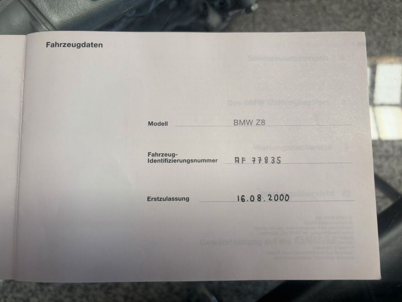 - orig. Leder-Z8-Produktionsbuch mit Foto des Fahrzeugs