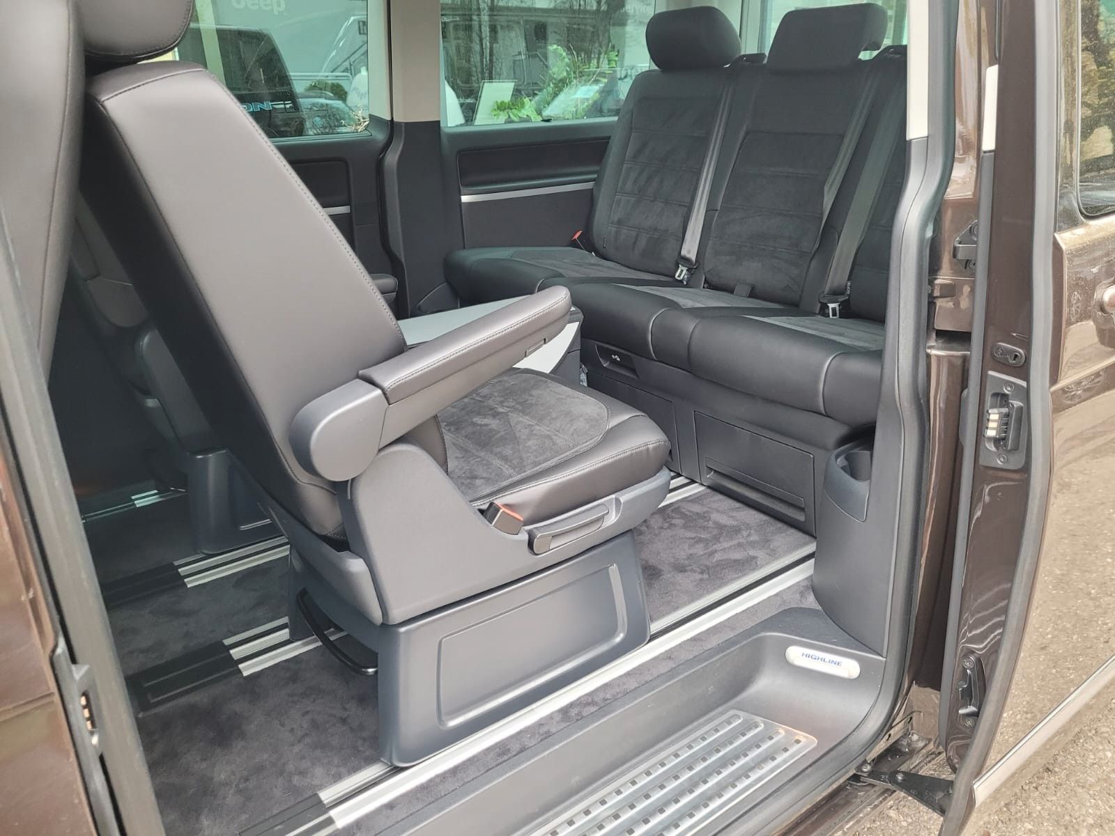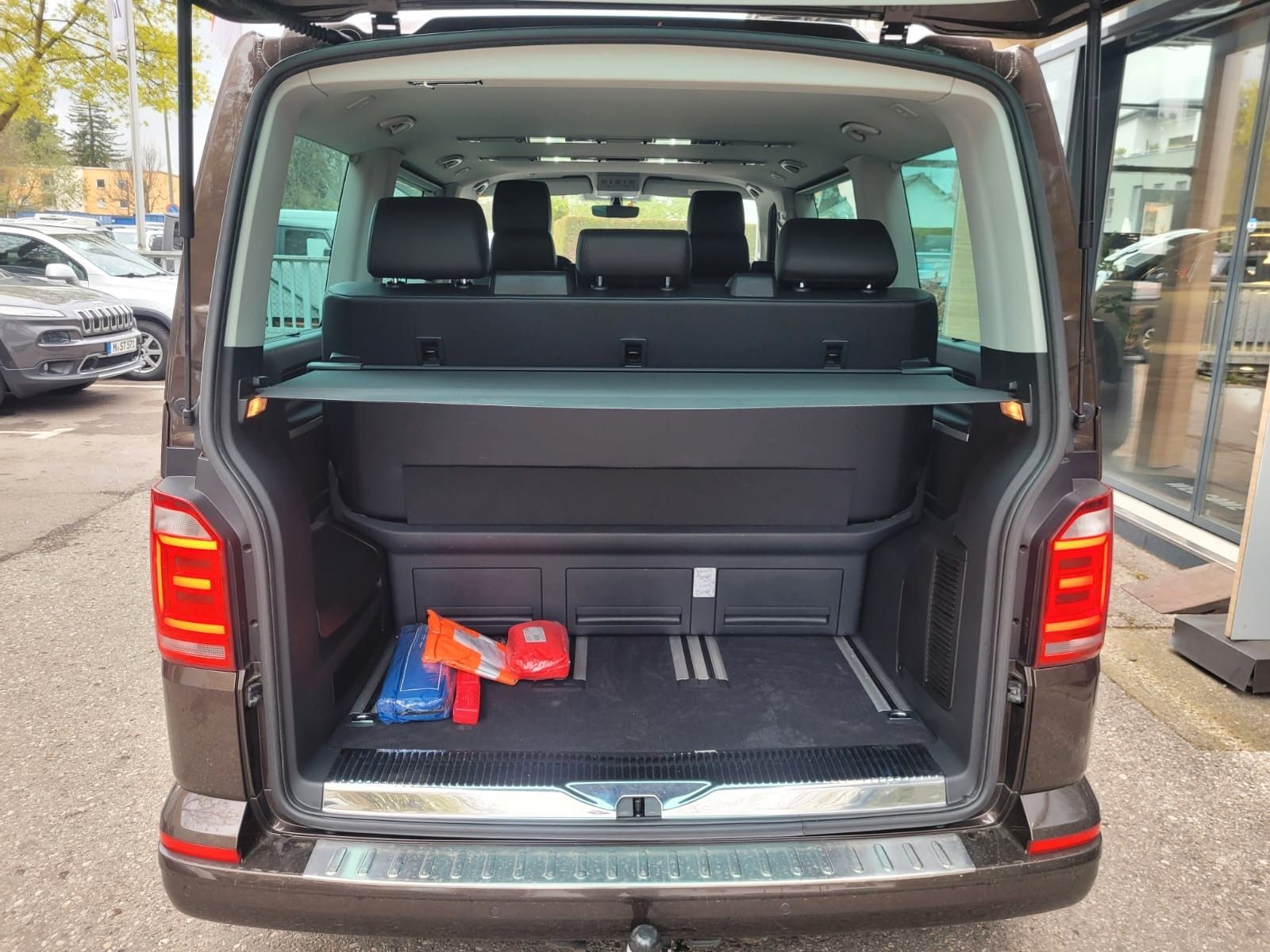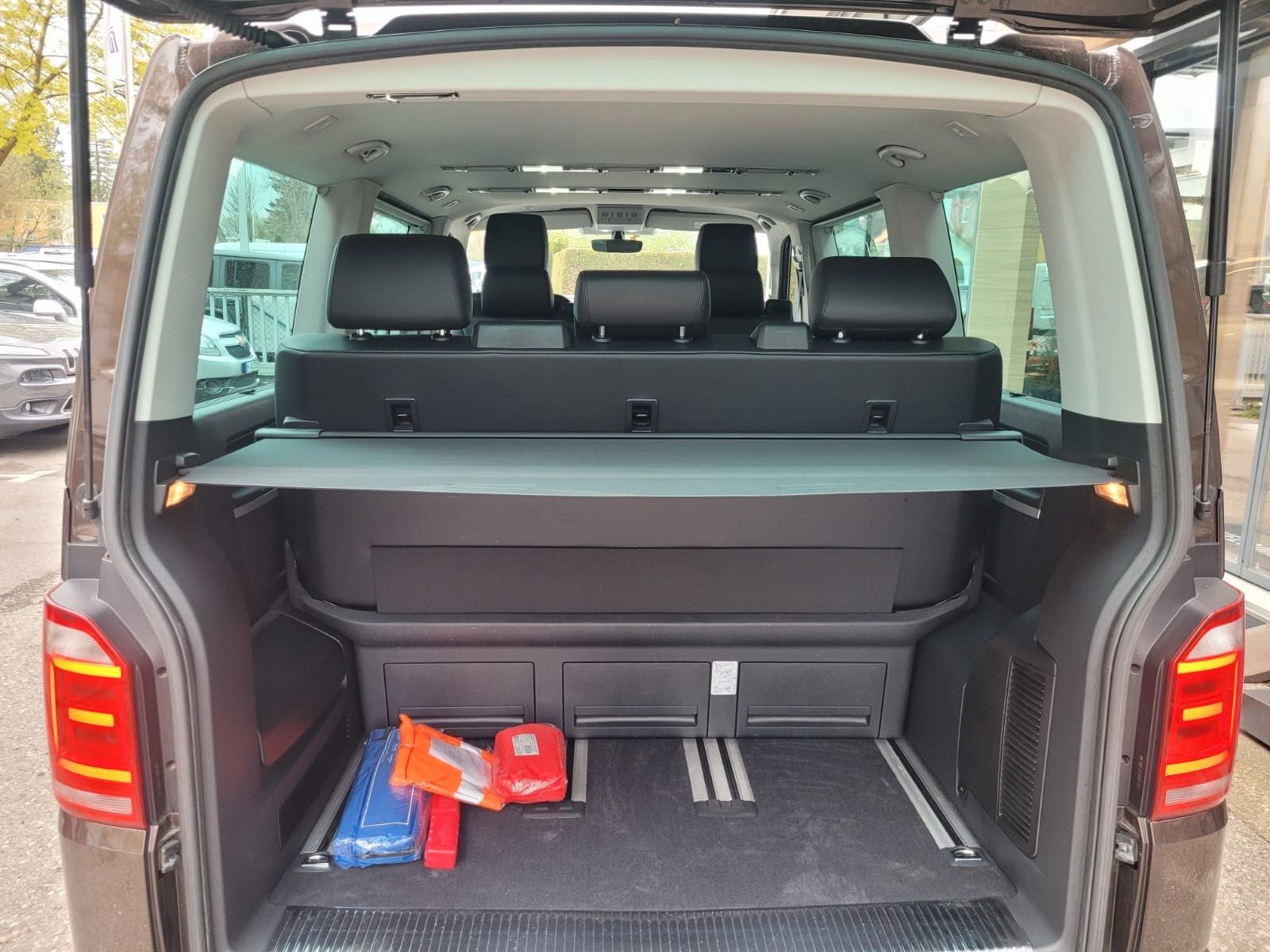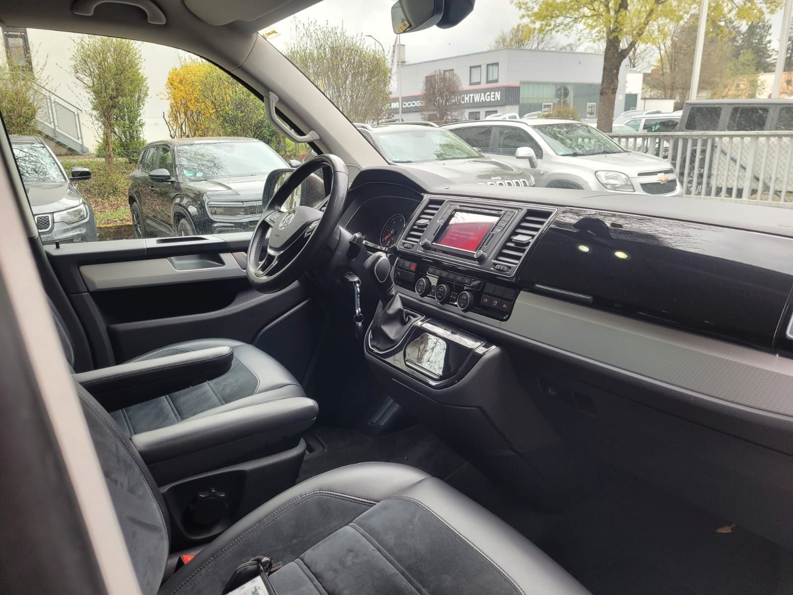 Abdeckung Schiebetürleiste, Airbag Beifahrer abschaltbar, Airbag Fahrer-/Beifahrerseite, Armaturentafel Komfort, Ausstattungs-Paket Licht + Sicht, Außenspiegel asphärisch, links, Außenspiegel elektr. verstell- und heizbar, Außenspiegel konvex, rechts, Außenspiegel und Türgriffe außen in Wagenfarbe, Außenspiegelfuß schwarz hochglänzend, Bodenbelag im Fahrerhaus: Teppich, Bodenbelag: Teppich verstärkt, Chromleisten Stoßfänger vorn, seitlich und Heckklappe unten, Doppeltonfanfare, Dynamik-Fahrwerk, Fahrassistenz-System: Bremsassistent (HBA), Fahrassistenz-System: Multikollisionsbremse (Multi Collision Brake), Fahrassistenz-System: Müdigkeitserkennungs-Sensor, Fenster im Lade-/FG-Raum: - feststehend, vorn und hinten links, Fenster im Lade-/FG-Raum: - feststehend, vorn und hinten rechts, Frontscheibe Verbundglas getönt, Funkschlüssel (2) klappbar, Fußmatten Fahrerhaus: Velours, Gepäckraumabdeckung / Rollo, Haltegriffe A-Säulen, Handschuhfach abschließbar, Heckklappe mit Verglasung, Heckscheibe heizbar, mit Wischanlage, Innenausstattung: Dekoreinlagen Structural X (Dekorband Black Glossy), Innenleuchten im Fahrerhaus: Leseleuchten vorn (2), Innenleuchten im Lade-/FG-Raum: Trittstufenleuchten, Innenraumfilter: Pollenfilter, Karosserie/Aufbau: Bus, Kindersicherung an den Schiebetüren, Klimaautomatik Climatronic (Fahrerhaus + Lade-/Fahrgastraum), Kraftstofftank: 70 Ltr., Kühlergrill schwarz lackiert, mit Chromleisten, Ladekanten-/ Trittstufenabdeckungen in Edelstahl, LM-Felgen, Motor 2, 0 Ltr. - 110 kW TDI, Multifunktionsanzeige Premium (Farbdisplay), Multimedia-Schnittstelle USB, Nichtraucher-Paket, Radstand 3000 mm, Reifenkontroll-Anzeige, Schadstoffarm nach Abgasnorm Euro 6, Scheinwerfer und Heckleuchten LED, Schiebetür Lade-/Fahrgastraum rechts, Schiebetüren Lade-/Fahrgastraum links/rechts, elektr. betätigt, SCR-System (AdBlue-Technologie), Seitenairbag / Kopfairbag (Curtain-Airbag) vorn, Sitzbezug / Polsterung: Alcantara, Sitze im Fahrerhaus: Beifahrersitz Komfort, Sitze im Fahrerhaus: Fahrer- und Beifahrersitz heizbar, Sitze im Fahrerhaus: Fahrer- und Beifahrersitz höhenverstellbar, Sitze im Fahrerhaus: Fahrersitz Komfort, Sitze im Fahrerhaus: Lendenwirbelstützen Fahrer- und Beifahrersitz, Sitze im Lade-/FG-Raum: 1.Reihe, 2 Drehsitze, Sitze im Lade-/FG-Raum: 2.Reihe, 3er-Sitzbank, Sonnenblenden mit Spiegel (beleuchtet), Sonnenschutzrollo im Fahrgastraum, Start/Stop-Anlage Motor, Steckdose (12V-Anschluß) im Fahrerhaus, Stoßfänger in Wagenfarbe, Türablagekasten vorn, Verglasung hinten abgedunkelt, Verkleidung im Lade-/FG-Raum: Kunstleder, Wärmeschutzverglasung, Zentralverriegelung mit Fernbedienung, Safesicherung und Innenbetätigung, Zuheizer, Zul. Gesamtgewicht 3, 00 t, Zuziehhilfe für Heckklappe