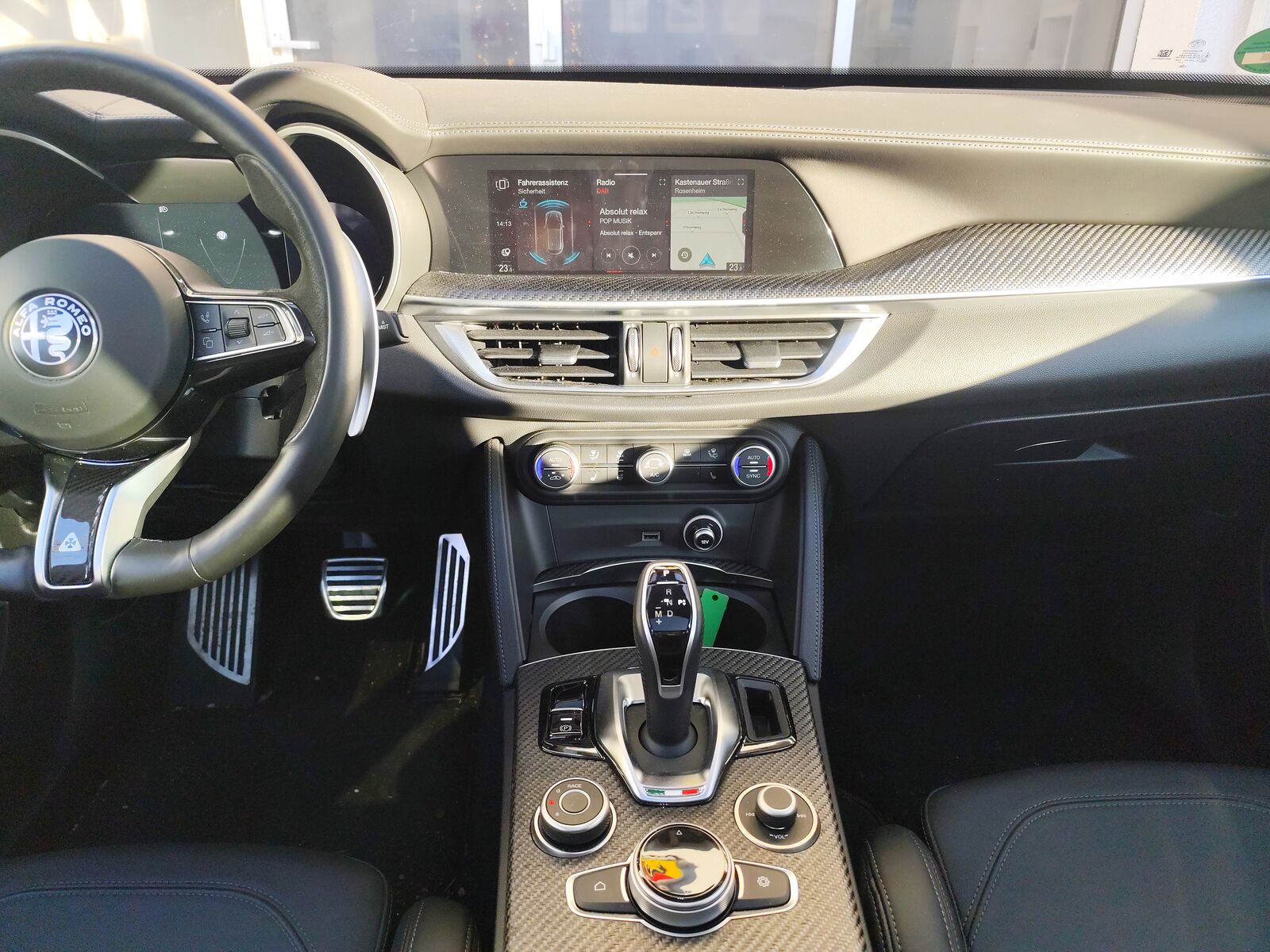 Aktive Giermomentkontrolle (AYC), Anhnger-Stabilisierungs-Programm (TSA), Antriebsart: Allradantrieb, Armaturenbrett und Trverkleidungen in Leder, Auspuffanlage 2-flutig, Auenspiegel Anthrazit, Auenspiegel schwarz, glnzend, Blinkleuchten LED in Auenspiegel integriert, Bremsanlage: Brembo, Bremslicht mit Notfallfunktion (Einschaltautomatik Warnblinkanlage), Bremssttel eloxiert, Einstiegsleiste mit Schriftzug (Logo), Elektron. Bremskraftverteiler (EBD), Elektron. Traktionskontrolle, Fahrassistenz-System: aktiver Spurhalteassistent (LKA), Fahrassistenz-System: Alfa Romeo D.N.A.-Fahrdynamik-System, Fahrassistenz-System: Autonomer Notbrems-Assistent (AEB), Fahrassistenz-System: Berganfahrhilfe (Hill-Holder), Fahrassistenz-System: Fernlichtassistent, Fahrassistenz-System: Frontkollisionswarnung (FCW), Fahrwerk Aktiv mit elektronischer Stodmpferregelung (Active Suspension), Fensterrahmen schwarz, Frontgrill Anthrazit, Frontscheibe infrarot-reflektierend, Fumatten, Gepcknetz im Koffer-Laderaum, Getriebe Automatik - (8-Stufen), Getrnkehalter, Gurtstraffer, Heckdiffusor, Heckleuchten dunkel getnt, Heckleuchten LED, Infotainment-Center mit 7 Farbdisplay, Infotainment-System: UConnect 3D Nav (Farbbildschirm 8, 8), Innenausstattung: Interieur dunkel, Dachsule und Dachhimmel in schwarz, Innenausstattung: Interieurleisten Carbon, Innenausstattung: Rahmen der Armaturentafel und Trverkleidung in Carbon-Optik, Innenspiegel mit Abblendautomatik, Ionisator zur Luftreinigung, Karosserie: 5-trig, Keyless-Entry, Klimaautomatik 2-Zonen, Kofferraumdeckel Heckklappe elektr. bettigt Easy-Load (ffnen + schliessen), Kopfsttzen hinten, Kurvenbremskontrolle (CBC ESBS), Lenkrad heizbar, Lenkrad mit Schaltwippen-tasten, Lenksule (Lenkrad) verstellbar (vertikal axial), Licht- und Regensensor, Luftdsen im Fond, Matrix-LED-Scheinwerfer (Adaptives Scheinwerferlicht), Modellpflege (2), Motor 2, 9 Ltr. - 382 kW V6 KAT, Motor-Schleppmoment-Regulator (MSR EDC), Otto-Partikelfilter (OPF), Parkbremse elektrisch, Pedale Aluminium, Radnabenabdeckungen, Radstand 2818 mm, Regen-Bremsassistent (RBA), Reifen-Reparaturkit, Reifendruck-Kontrollsystem, Rckfahrkamera, Schadstoffarm nach Abgasnorm Euro 6, Schadstoffarm nach Abgasnorm Euro 6d, Schalt-Whlhebelgriff Aluminium, Scheibenwaschdsen heizbar, Schienensystem im Kofferraum, Seitenschweller Wagenfarbe, Servolenkung (Aktivlenkung), Sitze vorn elektr. verstellbar (8-fach), Sitzflche vorn neigungsverstellbar, Sitzheizung vorn, Smartphone Schnittstelle (Apple CarPlay & Android Auto), Sonnenblende links mit Spiegel (beleuchtet), Sperrdifferential (Q2), Sport-Auspuffanlage, Sportsitze Leder, Start-Stop-Knopf, StartStop-Anlage, Steckdose (12V-Anschlu) in Mittelkonsole, Steckdose 230V im Kofferraum, Stofnger vorn und hinten im Quadrifoglio Design, Trgriffe auen Aluminium-Optik, Trgriffe auen mit LED-Beleuchtung, Uni-Lackierung Alfa-Rot, Unterfahrschutz hinten, Vehicle-Dynamic-Control (ESP VDC), Warnanlage fr Sicherheitsgurte,