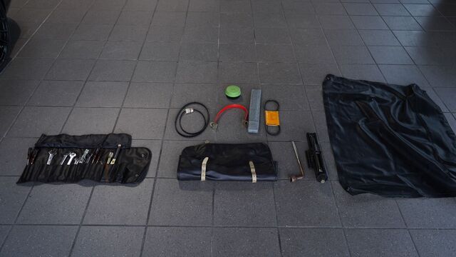 Unterlagen & Zubehör: Komplette Dokumentenmappe inkl. Betriebsanleitungen und originalem Serviceheft, Bordwerkzeug vorhanden. Zusätzlich alte Fahrzeugpapiere, zahlreiche Rechnungen (u. a. von Ferrari Blöchl) sowie diverse TÜV-Berichte.
