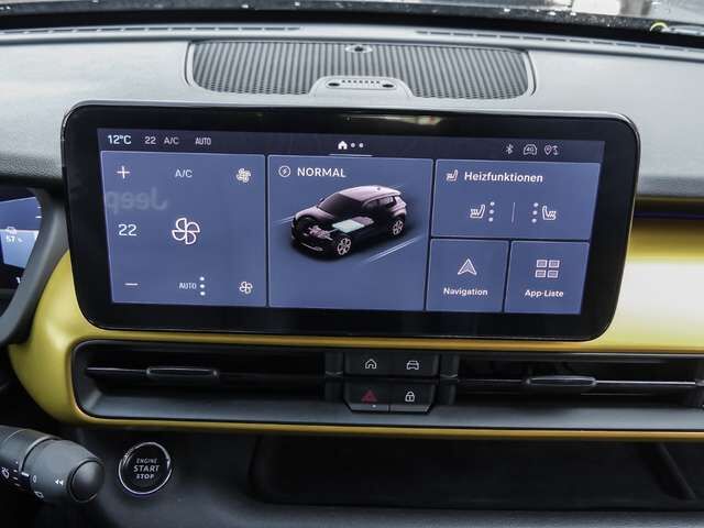 • Weiteres: Heckklappenöffnung elektrisch, ISOFIX-Aufnahmen für Kindersitz, Geschwindigkeits-Regelanlage (Tempomat), Einparkhilfe hinten, Lenksäule (Lenkrad) mechan. verstellbar, Innenspiegel mit Abblendautomatik, LM-Felgen, Audiosystem: UConnect Smartouch Multimedia, Heckleuchten LED, Sitzbezug / Polsterung: Stoff / Vinyl, Lenkrad (Kunstleder), Info-Center mit 10, 25 Display, Elektromotor 115 kW, Nebelscheinwerfer LED, Traction-Control-System (Selec-Terrain), Fahrassistenz-System: Autonomer Notbrems-Assistent mit Fußgängererkennung, Armaturentafel Gelb, Außenspiegel elektr. verstell- und heizbar, beide, Infotainment-System: UConnect mit DAB Radioempfang (Touchscreen 10, 25), Mittelarmlehne vorn mit Staufach, Radstand 2562 mm, Sitz vorn rechts verstellbar (4-fach), Smartphone Schnittstelle (Apple CarPlay & Android Auto), Projektor-Scheinwerfer LED, Airbag Fahrer-/Beifahrerseite, Anti-Blockier-System (ABS), Außenspiegel elektr. verstellbar, beide, Start-Stop-Knopf, Zentralverriegelung, Ambiente-Beleuchtung LED, Antriebsart: Frontantrieb, Auffahrwarnsystem (Forward Collision Warning), Außenspiegel elektr. anklappbar, Außenspiegel mit Totwinkel-Assistent, Autobahnassistent (Highway Assist), Bergabfahr-Assistent, DAB-Tuner (Radioempfang digital), Elektron. Stabilitäts-Programm, Elektron. Traktionskontrolle, Fahrassistenz-Paket, Fensterheber elektrisch vorn und hinten, Fernlichtassistent, Frontscheibe mit Wischerablagenheizung, Gepäckraumboden höhenverstellbar, Induktionsladeschale für Smartphone, Klimaautomatik, LED & Style-Paket, Lichtassistent (Coming Home, Leaving Home), Müdigkeitserkennung, Park-Assistent mit 360 Bewegungssensoren, Parkbremse elektro-mechanisch, Querverkehrs-Assistent Heck (Rear Cross Path Detection), Rückfahrkamera mit 360 Surround View, Schließ-/Startsystem Keyless Go, Sitz vorn links verstellbar (6-fach), Sitzbezug / Polsterung: Leder, Sitzheizung vorn, Spurhalteassistent, Summit, Überschlag-Schutzsystem (ERM), Unterfahrschutz Silber, Verglasung hinten abgedunkelt, Verkehrszeichenerkennung (TSR), Winter-Paket, ZV mit Fernbedienung