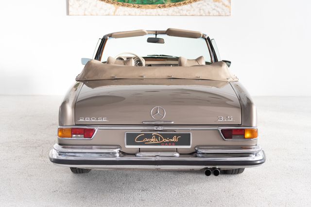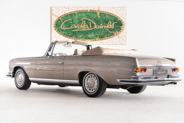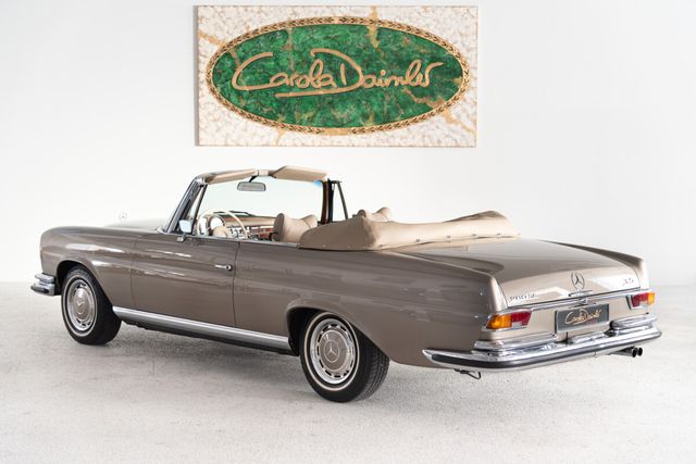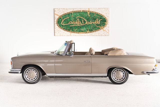 Zum Verkauf steht ein außergewöhnlich schönes Mercedes-Benz 280 SE 3.5 Cabriolet aus dem Jahr 1971, eines der begehrtesten und seltensten Modelle der W111-Baureihe. Dieses Exemplar verfügt über Matching Numbers und präsentiert sich in der stilvollen Farbe graubeige metallic, kombiniert mit einer hellbeigen Lederausstattung, die dem Fahrzeug eine besonders harmonische und edle Ausstrahlung verleiht.Auf der Basis seiner erstklassig erhaltenen Karosseriesubstanz wurde der Wagen umfassend und fachgerecht restauriert und überzeugt heute durch einen außergewöhnlich guten Gesamtzustand. Die hohe Qualität der Arbeiten zeigt sich in der beeindruckenden optischen Erscheinung ebenso wie in der technischen Solidität des Fahrzeugs. Der kultivierte 3.5-Liter-V8-Motor unterstreicht den exklusiven Charakter dieses Modells und macht das Cabriolet zu einem gesuchten Klassiker mit langfristigem Wertpotenzial.Zwischen 2010 und 2014 befand sich das Fahrzeug in der Schweiz, was seine gepflegte Historie zusätzlich unterstreicht.Insgesamt präsentiert sich dieses 280 SE 3.5 Cabriolet als ein herausragendes und äußerst elegantes Fahrzeug für anspruchsvolle Liebhaber und Sammler, die besonderen Wert auf Originalität, Stil und Authentizität legen. Der nach Werksangaben von September 1967 bis Oktober 1971 produzierte 280 SE Cabriolet W111 ist der Nachfolger des W105 und W180. Mit nur 1.390 produzierten Exemplaren ist er ein wahrer Exot.Der Produktionsbeginn der Baureihe begann jedoch schon im Jahr 1959 mit den Modellen 220 (b), 220 S(b) und 220 SE (b) und ab 1965 dem 230 S. Eine Neuentwicklung war das von 1969 bis 1971 serienmäßig verbaute 280 SE 3.5 Aggregat. Dieses Aggregat erinnerte durch sein brummelndes Laufgeräusch an amerikanische Spitzenmodelle. Man sollte wissen, dass die USA damals der Hauptabsatzmarkt für die großen Mercedes-Benz Modelle waren.Ein Merkmal der Modelle W111/112 war die weiterentwickelte Knautschzone vorne und hinten, ein Sicherheitslenkrad mit Prallplatte und Keilzapfentürschlösser, welche ein Aufspringen bei einem Unfall verhindern.Das Mercedes-Benz 280 SE-Cabriolet wurde serienmäßig mit einem 4-Gang Schaltgetriebe ausgeliefert, wer noch etwas drauflegte, bekam das Automatikgetriebe. Gleich blieben die Optionen der Lenkradschaltung oder der Schalthebel in der Wagenmitte.1969 betrug der Neuwagenpreis eines 280 SE Cabriolets ohne Extras 28.750, 00 DM. 2.000, 00 DM mehr als das Coupé. Wer das Automatikgetriebe wollte, musste nochmals 1.440, 00 DM drauflegen. Das es lange Zeit keinen Nachfolger des 4-sitzigen Cabriolets gab, waren die 280 SE Cabriolets lange in erster Hand.Heute gehört dieses Modell zu den gesuchten Mercedes-Oldtimer Modellen und verzeichnet eine rasante Wertsteigerung.