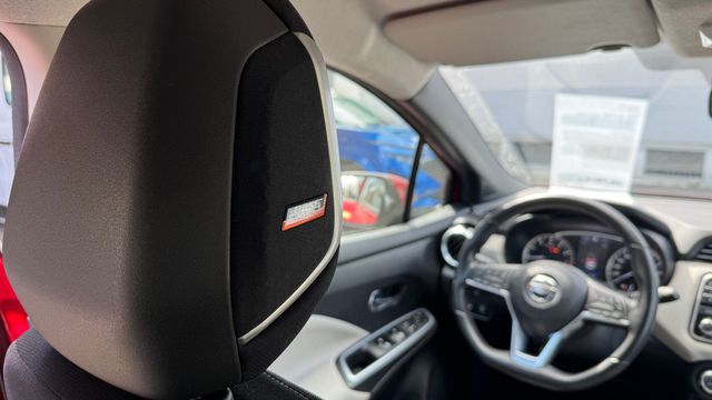 3. Bremsleuchte, 6 Lautsprecher, Airbag Beifahrerseite abschaltbar, Airbag Fahrer-/Beifahrerseite und Seitenairbag vorn, Ambiente-Beleuchtung, Around View Monitor (360 Umgebungsansicht), Audio-Paket, Audiobedienung am Lenkrad, Audiosystem: Radio mit CD-Player inkl. MP3-Wiedergabefunktion, Automatische Fahrlichtschaltung, AUX-IN-Anschluss (AUX-IN), Außenspiegel elektr. verstellbar, Außenspiegel Wagenfarbe, Außentemperaturanzeige, Bluetooth-Schnittstelle, Bordcomputer, Bose-Audiosystem, Bremsassistent (Nissan Brake-Assist), Comfort-Paket, Dachantenne, Dachspoiler, Design-Paket, Drehzahlmesser, Fahrassistenz-System: Autonomer Notbrems-Assistent, Fahrassistenz-System: Berganfahr-Assistent, Fahrassistenz-System: Fußgängererkennung, Fahrassistenz-System: Notbrems-Assistent, Fahrassistenz-System: Spurhalteassistent, Fahrassistenz-System: Verkehrszeichenerkennung, Frontscheibe Verbundglas, Gepäckraumabdeckung / Rollo, Geschwindigkeits-Begrenzeranlage, Getränkehalter hinten, Getränkehalter vorn, Gurtstraffer, Heckscheibe heizbar, Heckscheibenwischer, Innenspiegel mit Abblendautomatik, Isofix-Aufnahmen für Kindersitz, Karosserie: 5-türig, Klimaautomatik, Kopf-Airbag-System, Kopfstützen vorn und hinten verstellbar, Lenkrad (Sport/Leder), Lenksäule (Lenkrad) höhen-/längsverstellbar, Leseleuchte vorn, Leuchtweitenregelung automatisch, Motor 1, 0 Ltr. - 68 kW 12V KAT, Navigationssystem Nissan Connect, Nebelscheinwerfer, Reifen-Reparaturset, Reifendruck-Kontrollsystem, Rückfahrkamera, Rücksitzbank umklappbar, Schadstoffarm nach Abgasnorm Euro 6d, Schalt-/Wählhebelgriff Leder, Scheibenwischer mit Regensensor, Sitzheizung vorn, Sitz vorn links höhenverstellbar, Sitzbezug / Polsterung: Stoff, Sonnenblenden mit Spiegel, Start-Stop-Knopf, Start/Stop-Anlage, Steckdose (12V-Anschluß), Technik-Paket, Touchscreen-Farbdisplay (7, 0 Zoll) in Mittelkonsole, Türgriffe innen verchromt, Türverkleidung mit Stoffeinsatz, USB-Schnittstelle