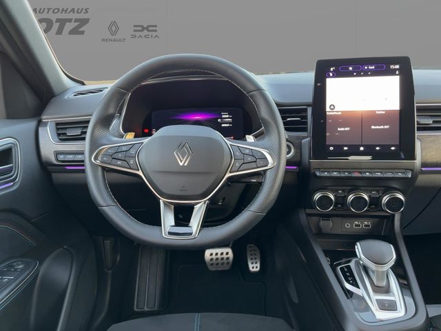 Entdecken Sie den RENAULT Arkana, ein vielseitiges SUV mit sportlichem Charakter und modernster Technologie. Dieses gepflegte Vorführfahrzeug aus 2024 präsentiert sich in elegantem Grau-Metallic mit schwarzem Stoffinterieur. Der 158 PS starke Benzinmotor mit Frontantrieb und Automatikgetriebe bietet dynamische Fahrleistungen bei gleichzeitiger Effizienz (Euro 6). Die umfangreiche Ausstattung umfasst ein digitales Cockpit mit Touchscreen, Apple CarPlay, Android Auto und DAB-Radio. Für Komfort sorgen die Zwei-Zonen-Klimaautomatik, beheizbare Sitze, beheizbares Lenkrad und Ambientbeleuchtung. Zahlreiche Assistenzsysteme wie adaptiver Tempomat, Spurhalteassistent, Totwinkelwarner und Kollisionsvermeidung erhöhen die Sicherheit. Die LED-Scheinwerfer mit Fernlichtassistent und Regensensor optimieren die Sicht. Parksensoren vorne und hinten sowie eine Rückfahrkamera erleichtern das Rangieren. Eine feste Anhängerkupplung rundet das Paket ab.