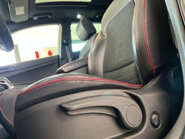 Sitze Teilleder/Alcantara Schwarz mit roten Nähten, Sitzheizung vorne, Fahrersitz höhen und längst verstellbar mit elektrischer Lordosenstütze, Isofix-Aufnahmen für Kindersitze, Rücksitzbank geteilt umklappbar