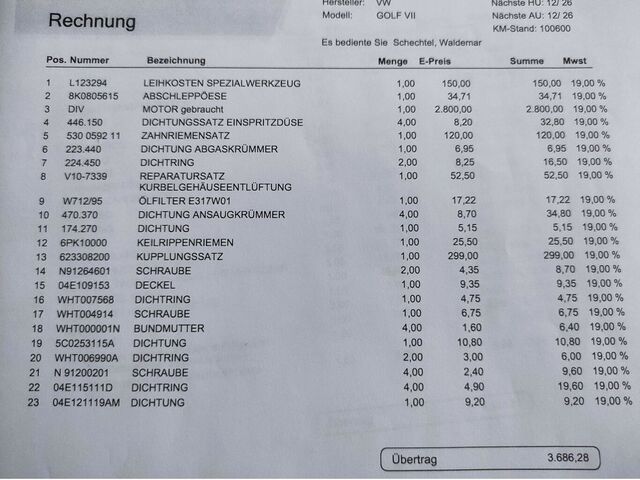 • AT-Motor mit Beleg aus 2024 in Höhe von 7800, 00 EUR liegt vor