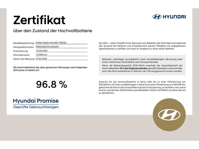 HYUNDAI KONA Elektro 64 kWh TREND / Allwetter / Navi / Assistenz-Paket / Kamera / CarPlay / HUD